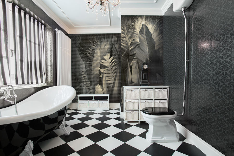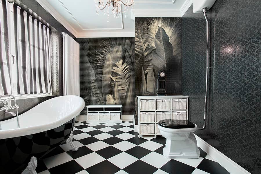Материал не впитывает воду, что позволяет широко использовать его в отделке ванных комнат, душевых, кухонь, бассейнов и других влажных помещений.