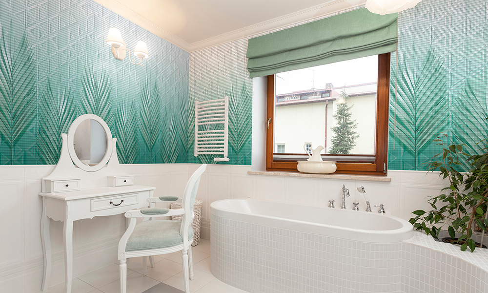 Материал не впитывает воду, что позволяет широко использовать его в отделке ванных комнат, душевых, кухонь, бассейнов и других влажных помещений.