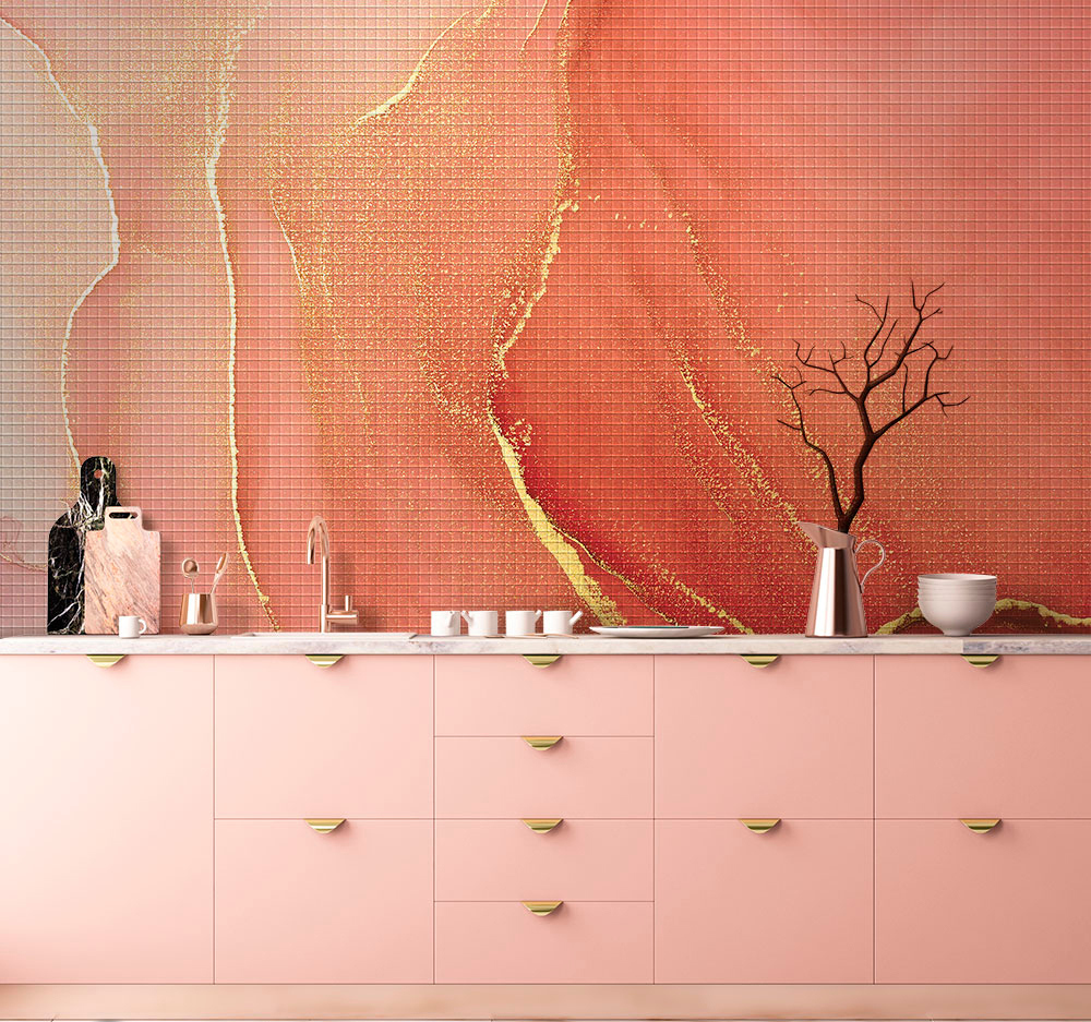 Сетка из стекловолокна, создающая несущую основу плитки-матрицы, гибкая. Это позволяет покрывать мозаикой Fabrizio Roberto® разноуровневые и криволинейные поверхности (бортики бассейнов, своды, колонны).