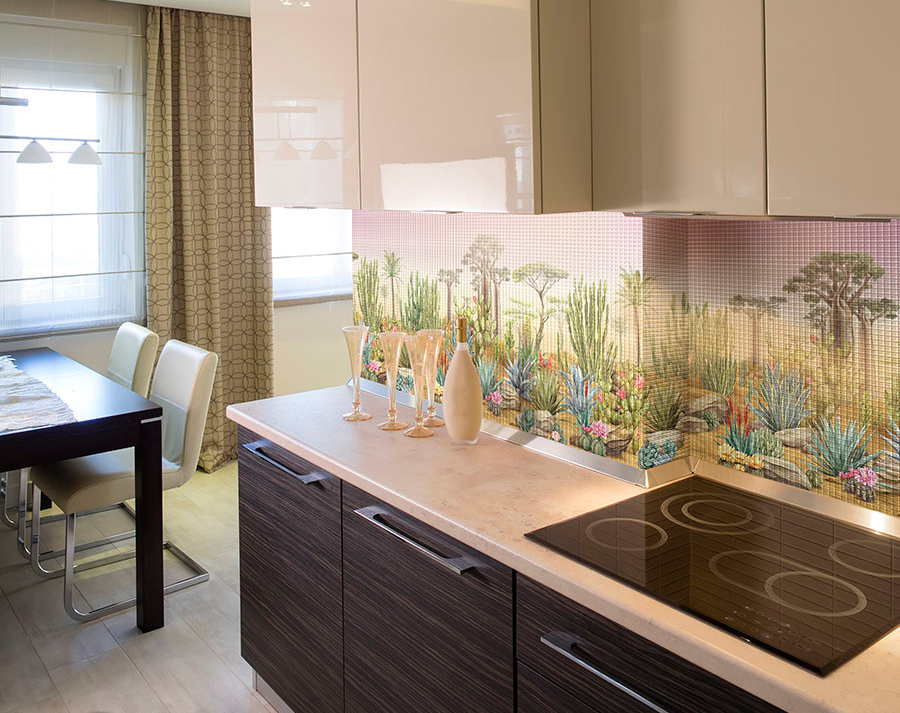 Технология производства материала позволяет воплощать в мозаичной технике любые изображения неограниченных размеров, как из нашего каталога, так и под заказ! Мозаику можно применять не только для отделки бассейнов и ванных комнат, но и в виде скинали (кухонных фартуков), бордюров и декоров, декорировать мебель и предметы интерьера.