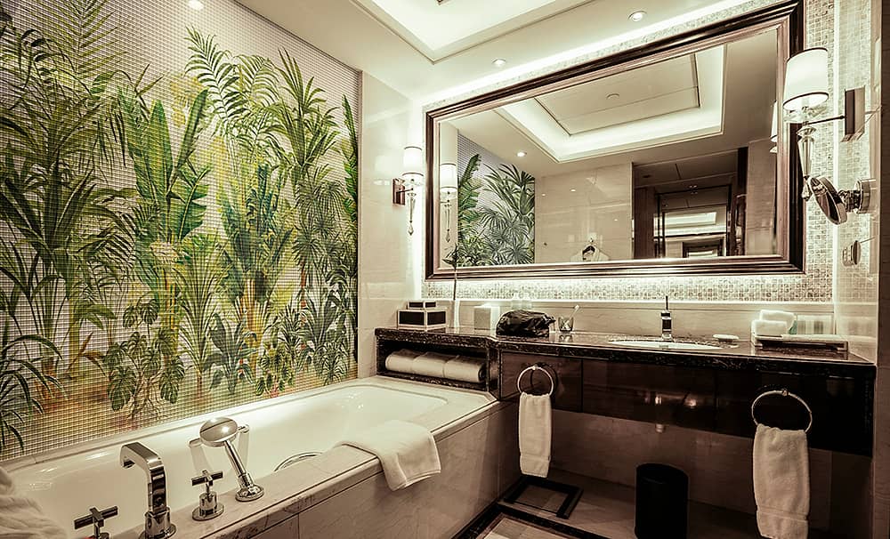 Материал не впитывает воду, что позволяет широко использовать его в отделке ванных комнат, душевых, кухонь, бассейнов и других влажных помещений.