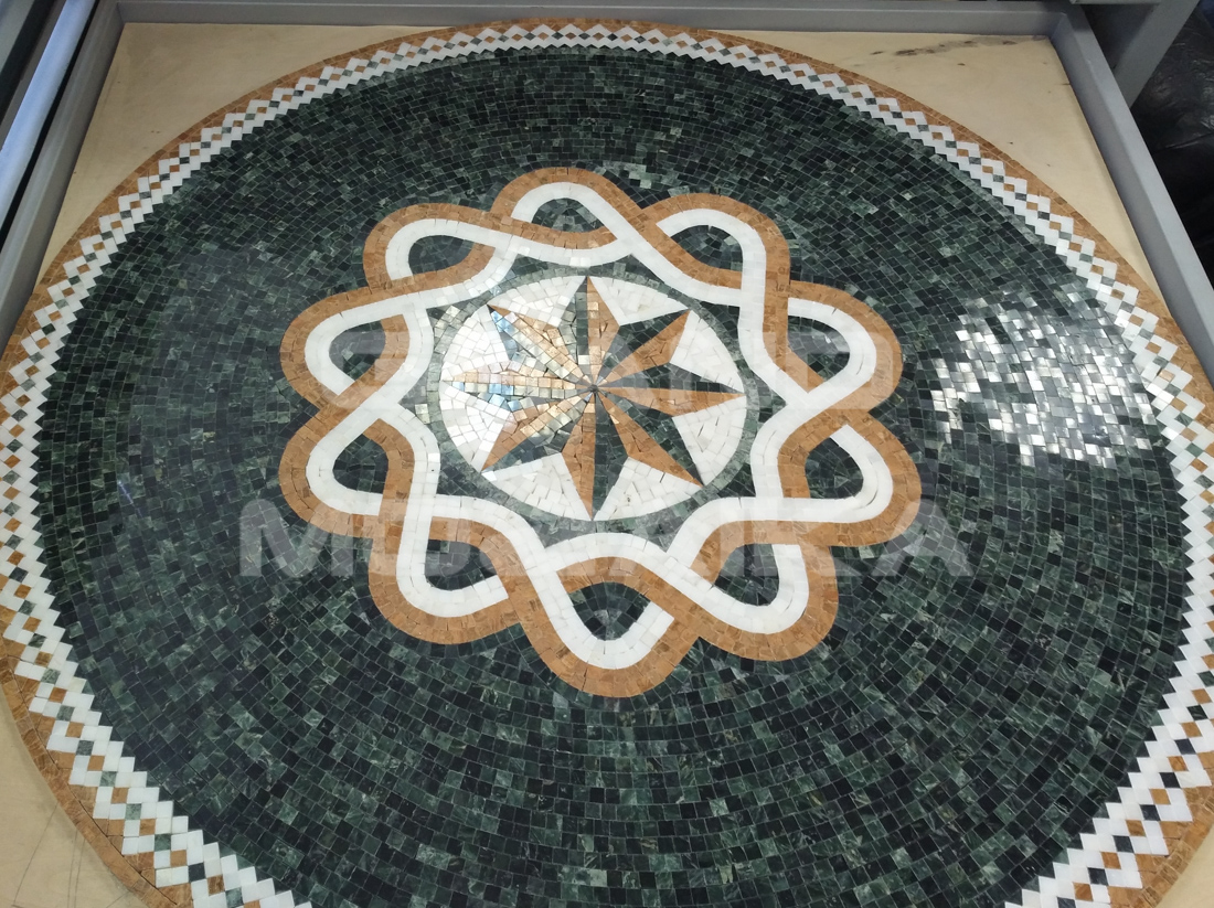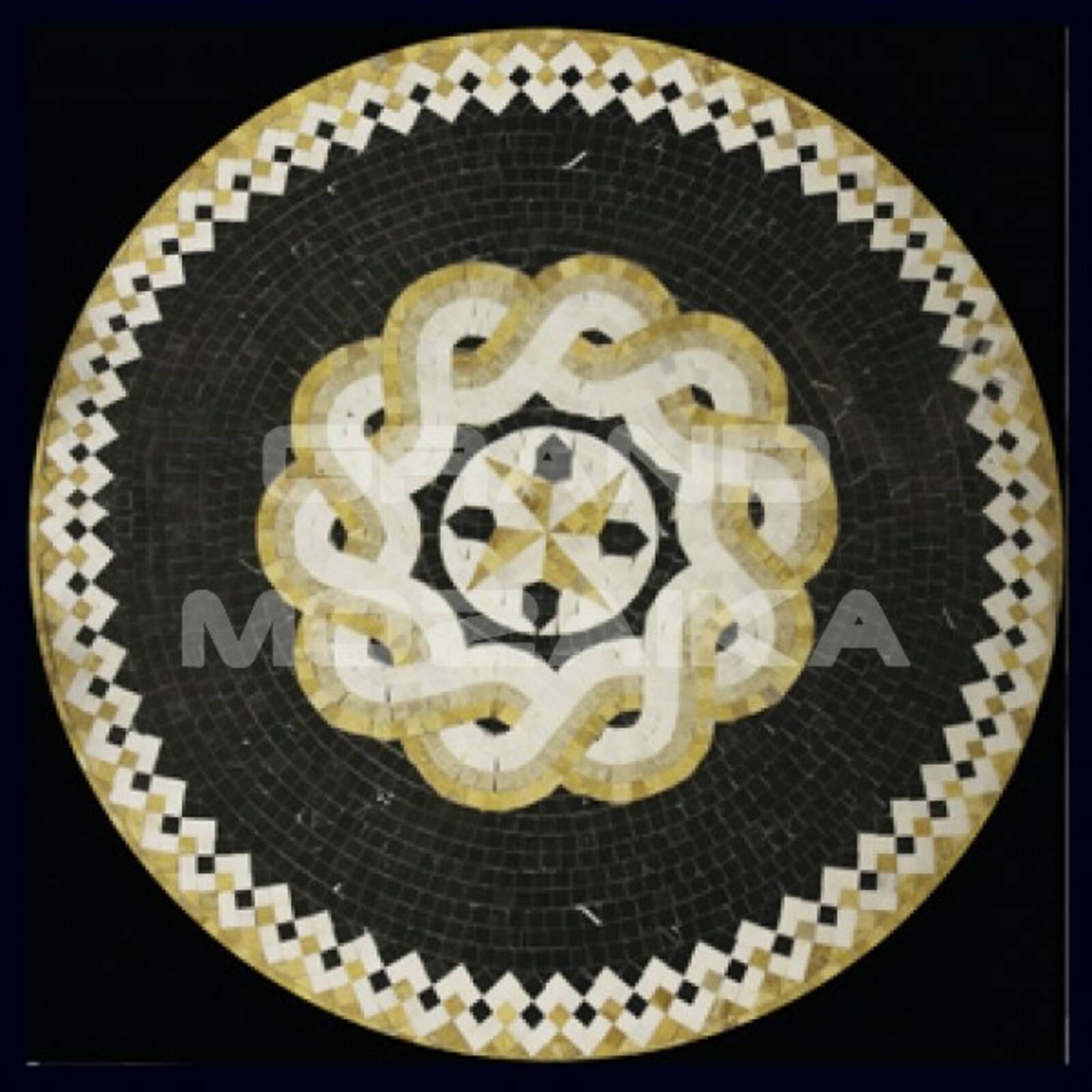 Мозаичные розоны NATURAL выложены из мрамора различных цветов.Панно круглой формы диаметром 1000 мм. Его можно использовать в интерьере как на стене, потолке или полу, как и любая мозаика она необычайно прочна. Такой ковер не оставит никого равнодушным и прослужит многие годы, не потеряв первоначальных свойств.