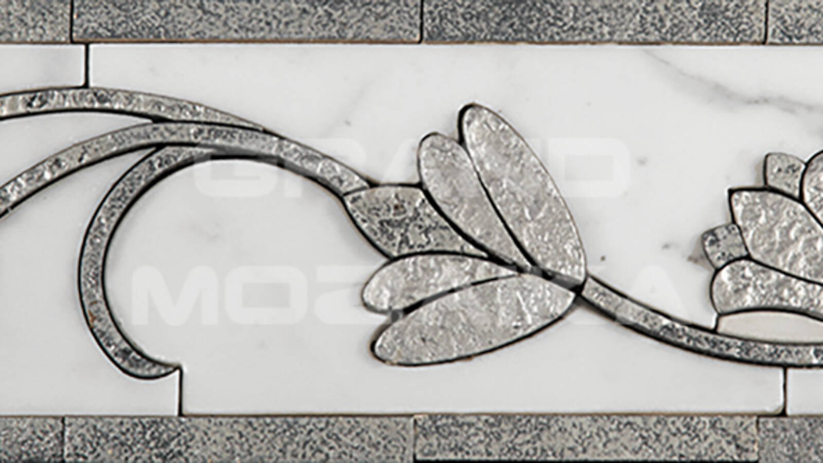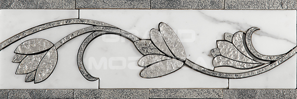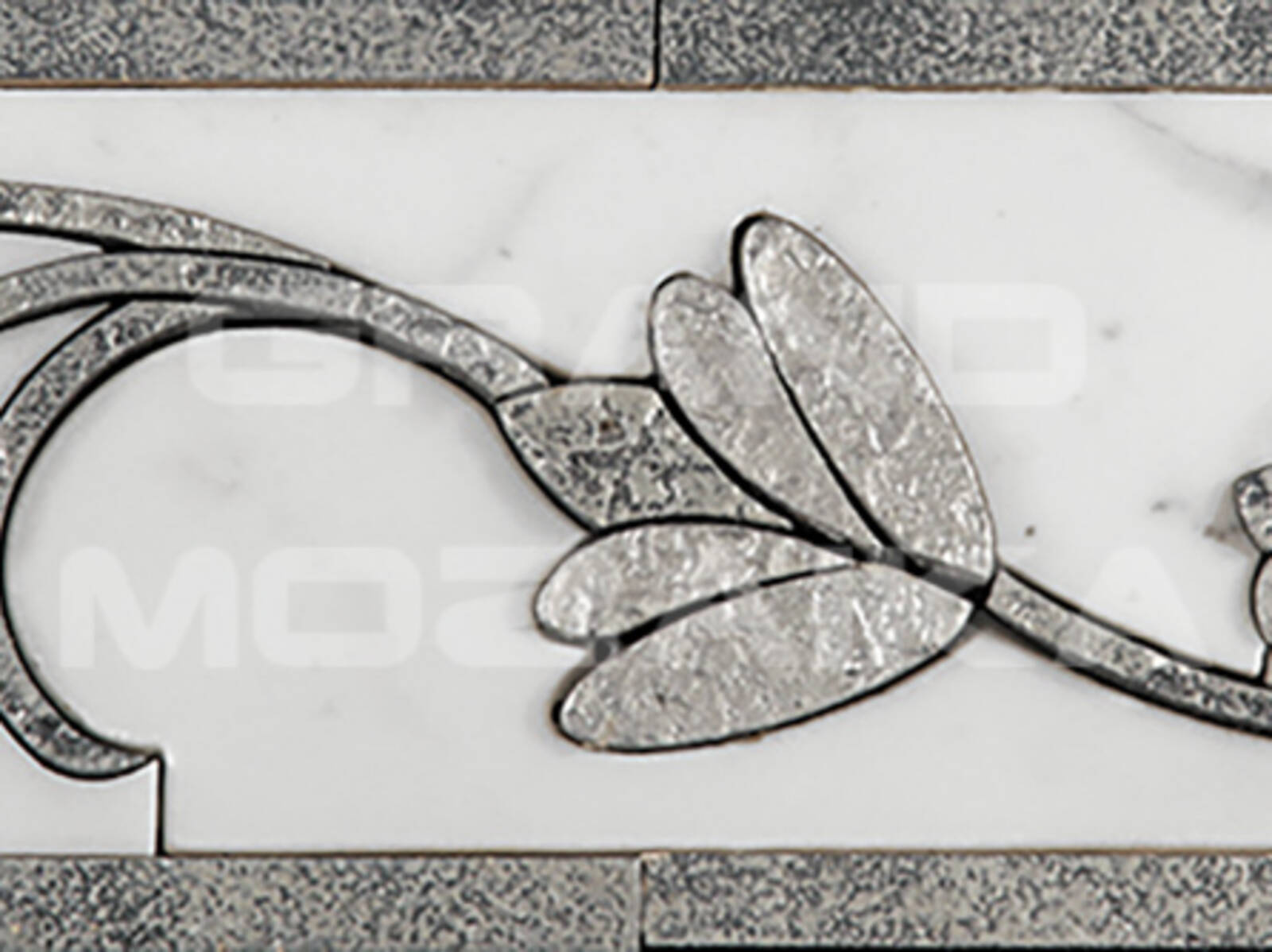 Бордюр из мрамора, серия Tulip, цвет: белый, серебряный, серый, размер чипа (мм): произвольно
