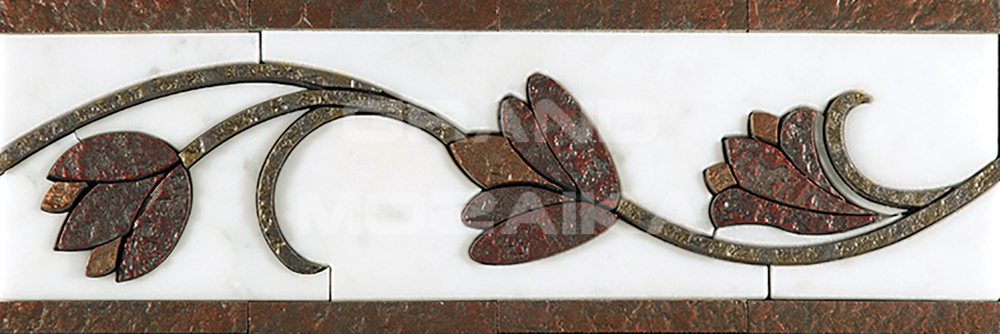 Бордюр из мрамора, серия Tulip, цвет: белый, коричневый, серый, размер чипа (мм): произвольно