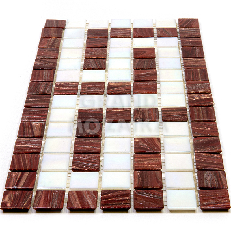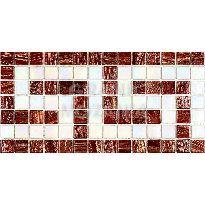 Матричный бордюр из коллекции для бассейнов Alma выполнен из глянцевых кусочков размером 20х20 мм. Бордюр украшен необычным коричнево-белым рисунком в египетском стиле. Такой бордюр будет прекрасно смотреться в дизайне бассейна в сочетаниями со стеклянными мозаиками из других серий.