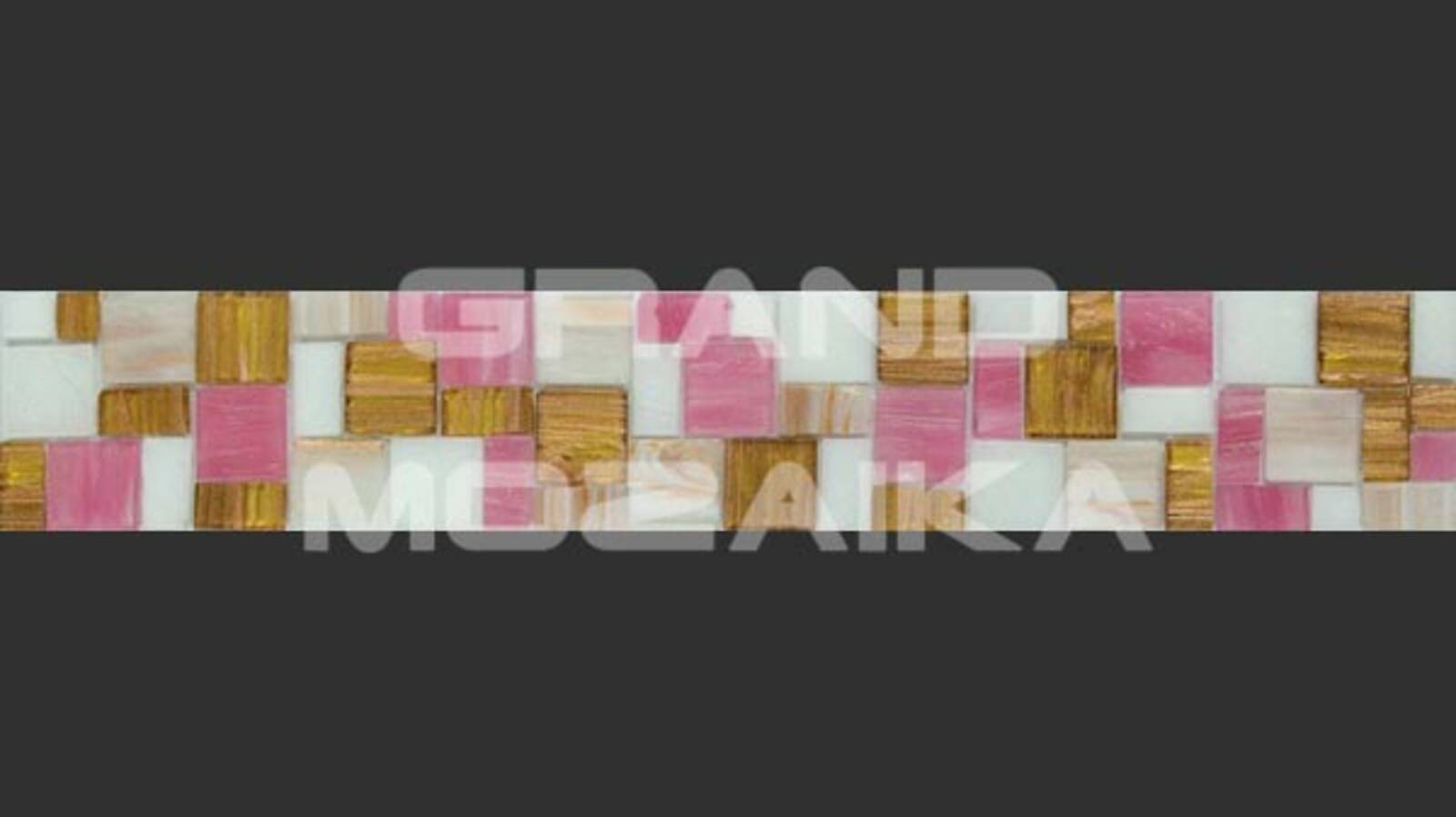 Матричный бордюр из коллекции для бассейнов Alma выполнен из небольших глянцевых кусочков. Бордюр украшен необычным геометрическим рисунком розового, коричневого и белого цвета.Такой бордюр будет прекрасно смотреться в дизайне бассейна в сочетаниями со стеклянными мозаиками из других серий.