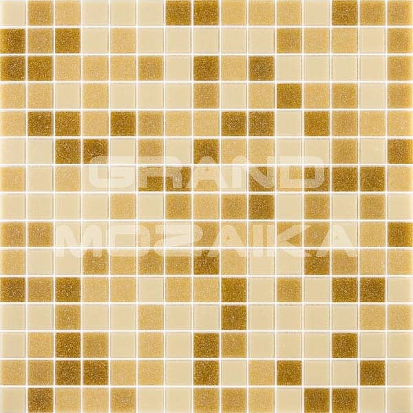 Мозаика для бассейнов серии Смеси из кусочков размером 20х20 см. Полотно 327х327 состоит из кусочков приглушенного золотого цвета, не требует особых навыков монтажа. Такая мозаика украсит любой бассейн и подойдет как для внутренней его отделки так и для внешней.