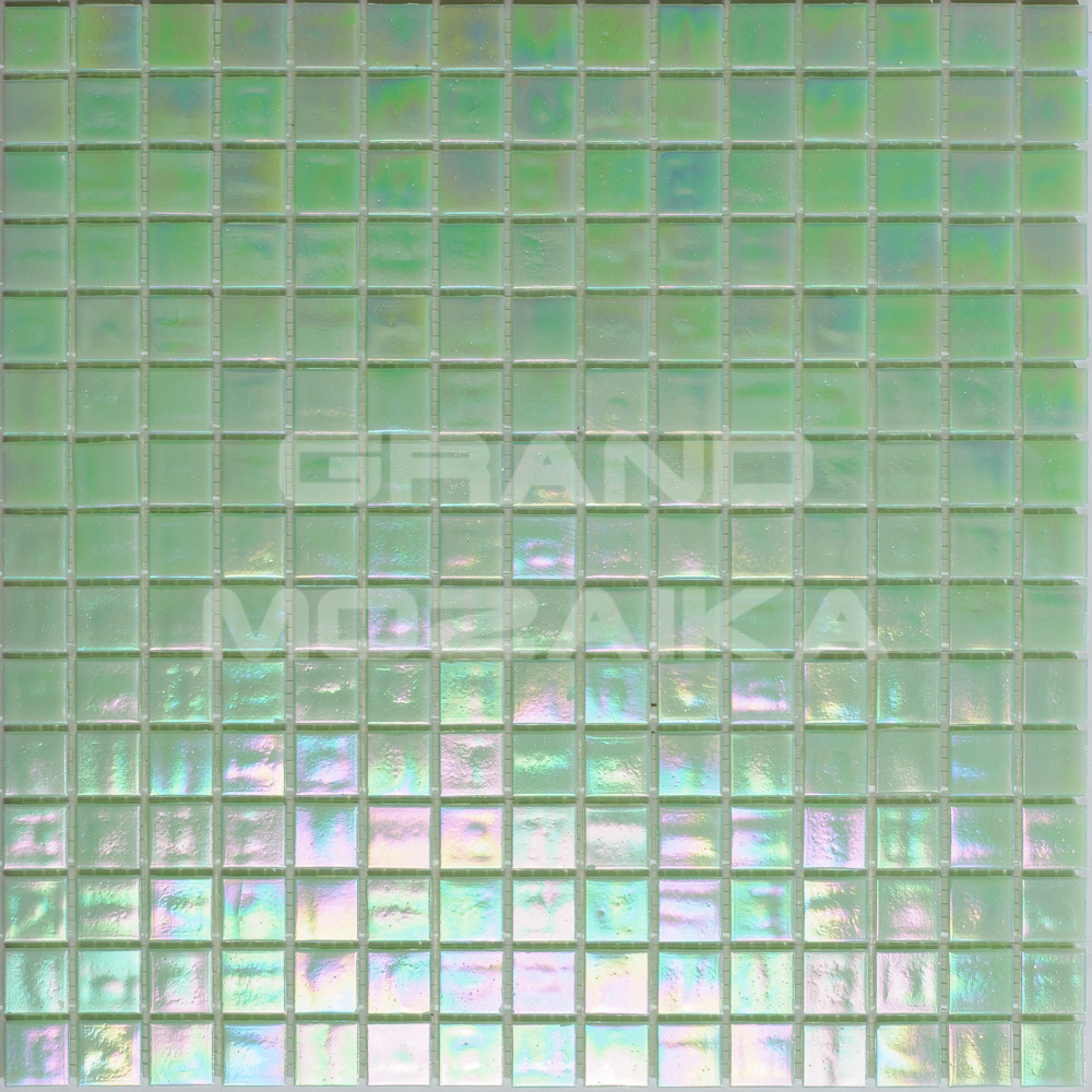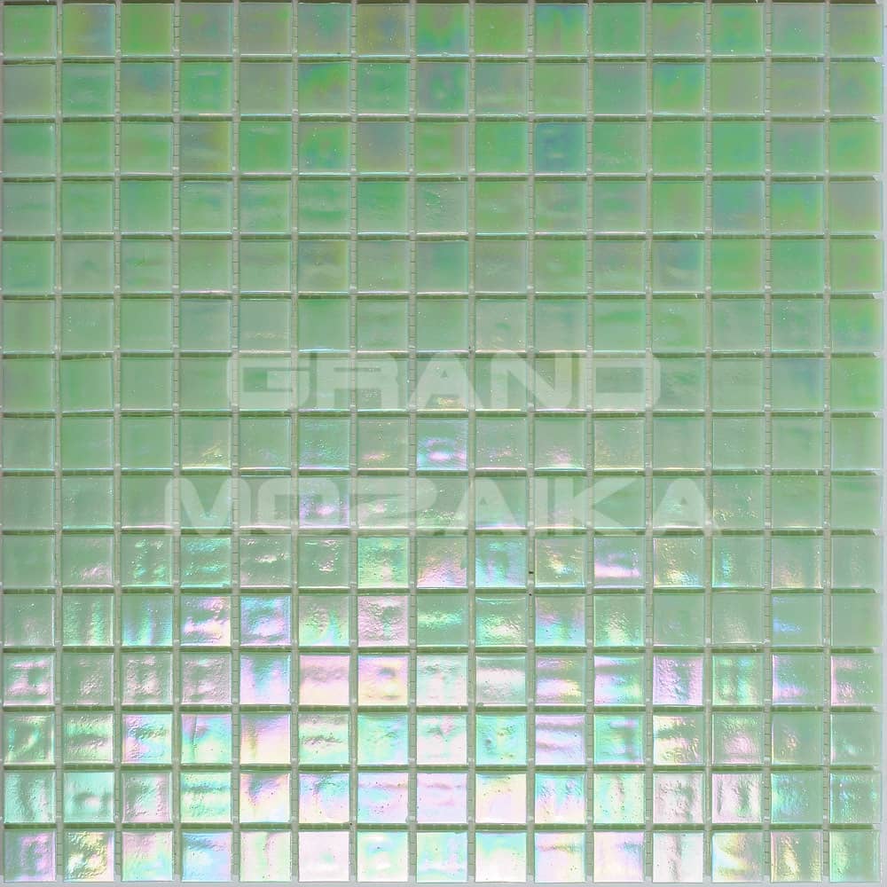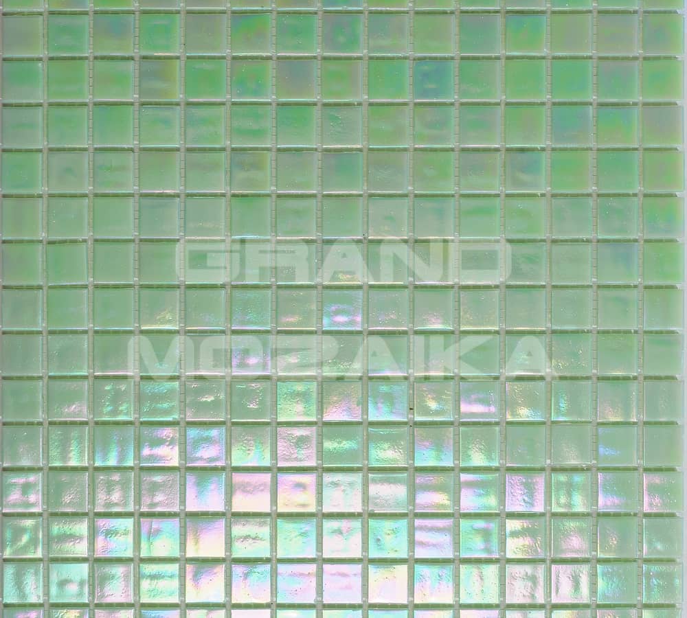 Голографическая мозаика бледно-зеленого цвета серии Pearly. Мозаика состоит из маленьких кусочков размером 20х20 мм. Полотно 327х327 мм легко в монтаже. Толщина 4 мм. Такая мозаика украсит любой бассейн или сауну.