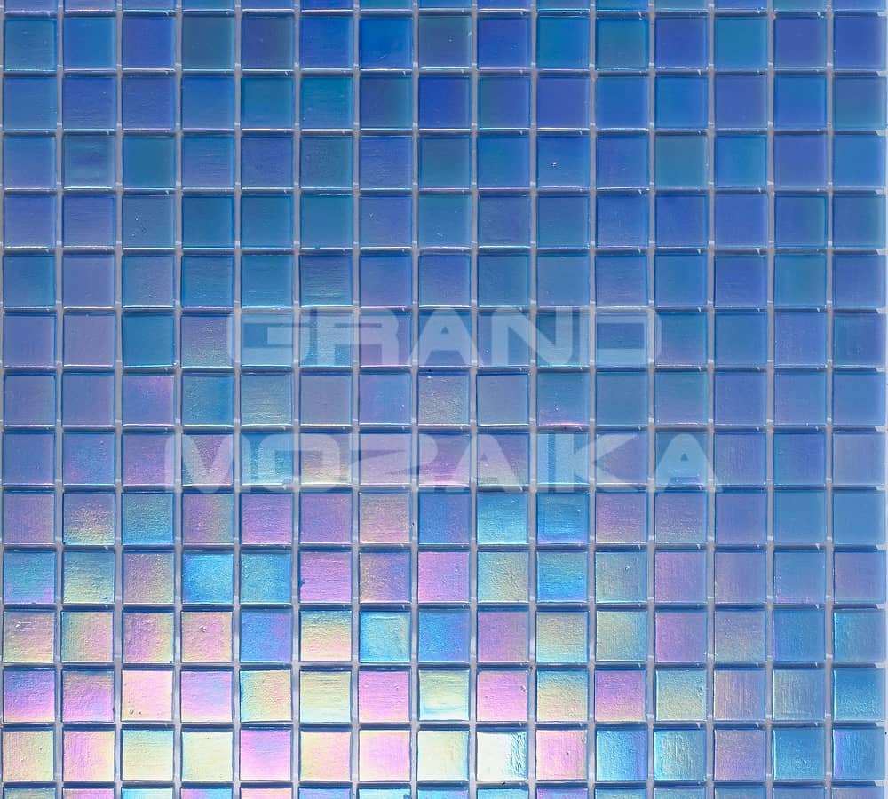 Голографическая мозаика нежно-голубого цвета серии Pearly. Мозаика состоит из маленьких кусочков размером 20х20 мм. Полотно 327х327 мм легко в монтаже. Толщина 4 мм. Такая мозаика украсит любой бассейн или сауну.