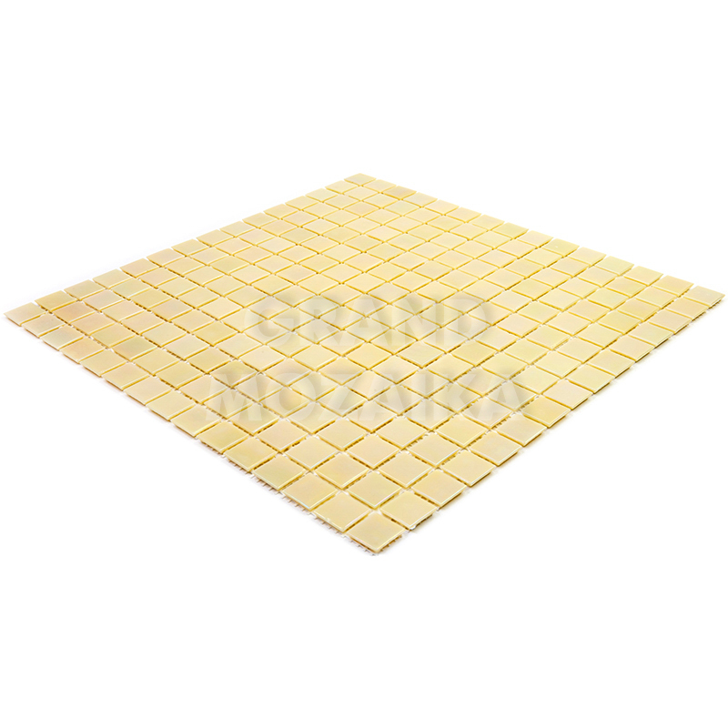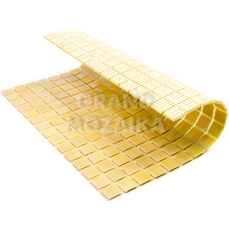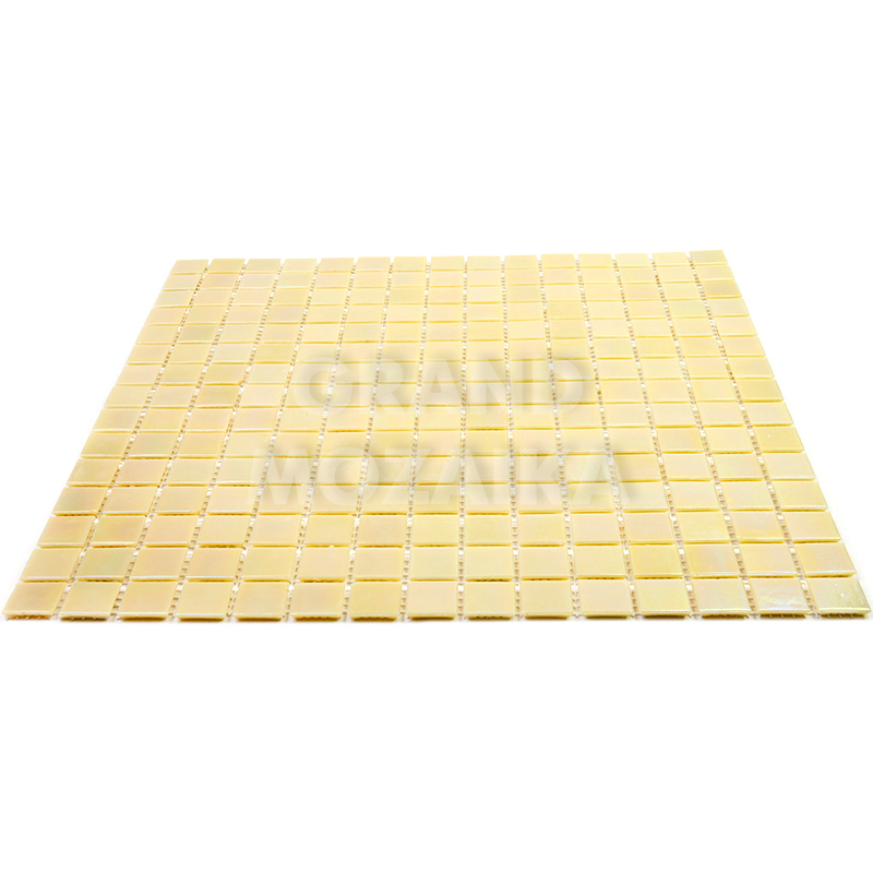 Голографическая мозаика бледно-золотого цвета серии Pearly. Мозаика состоит из маленьких кусочков размером 20х20 мм. Полотно 327х327 мм легко в монтаже. Толщина 4 мм. Такая мозаика украсит любой бассейн или сауну.