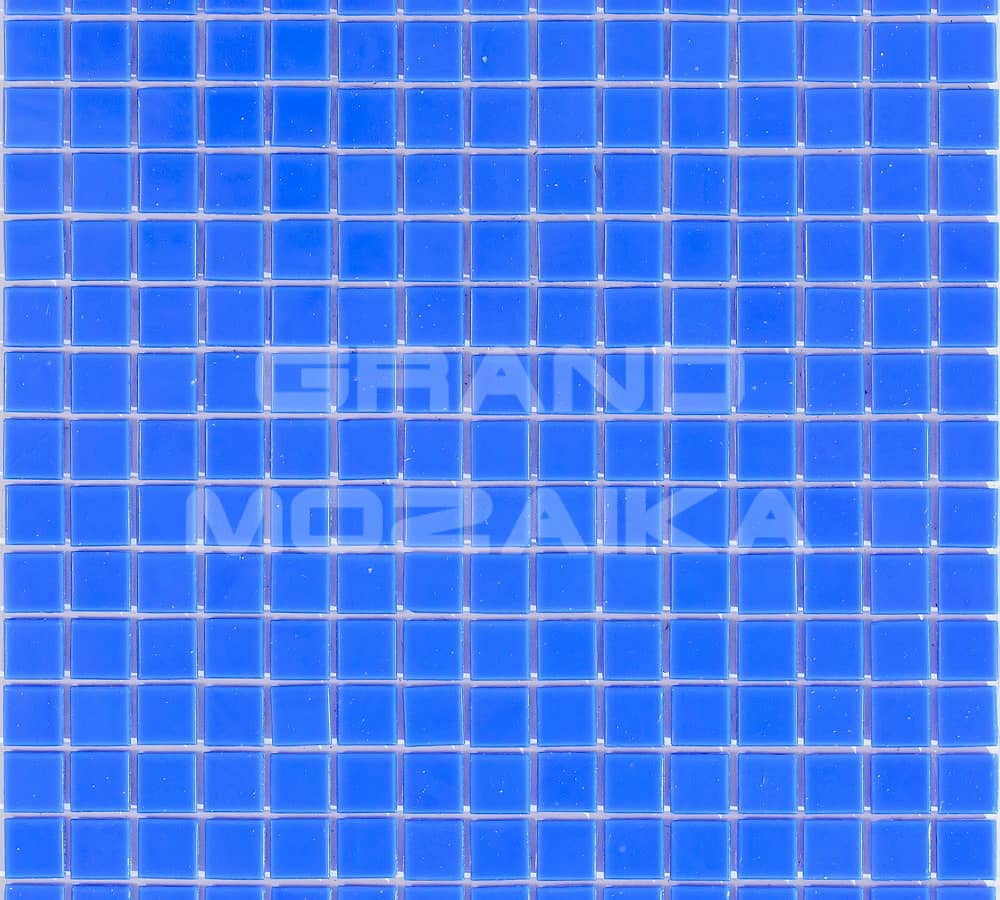 Стеклянная мозаика дымчато-голубого цвета серии Sandy. Поверхность мозаики глянцевая, размер чипа - 20х20 мм. Размер сетки 327х327 мм, что позволяет легко и без особых навыков закреплять ее на поверхности. Такая мозаика украсит поверхность бассейна любой формы и размера.