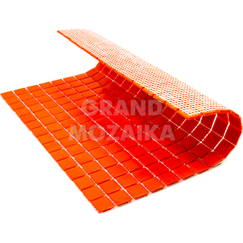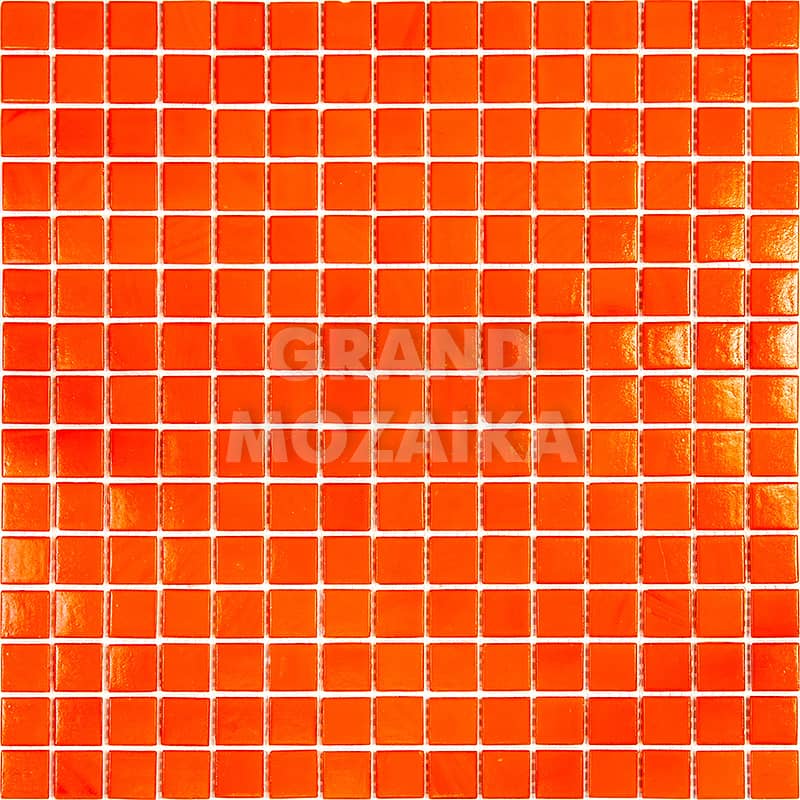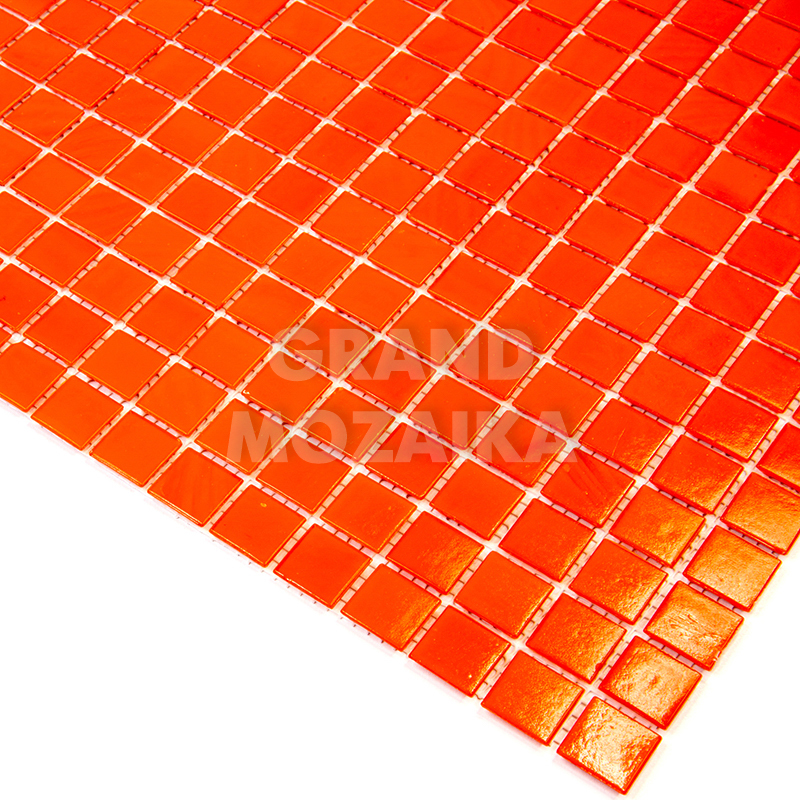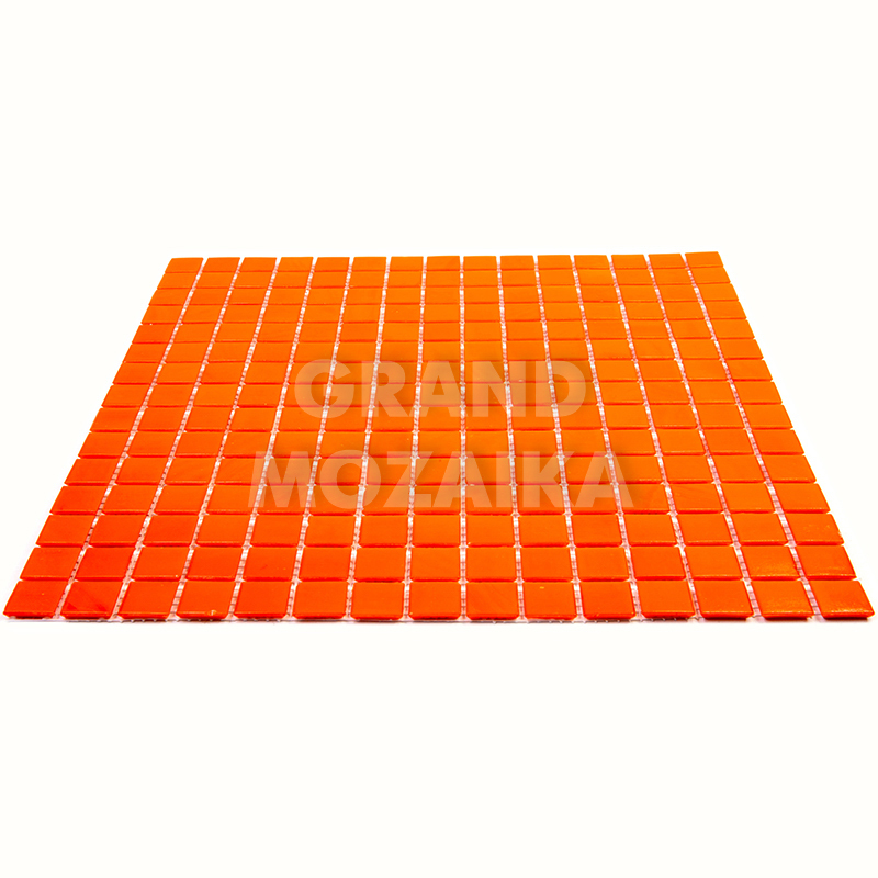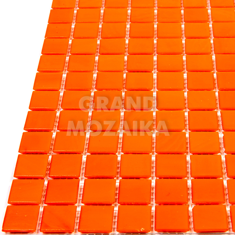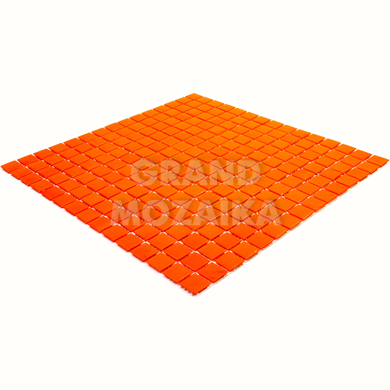 Стеклянная мозаика ярко-оранжевого цвета серии Sandy. Поверхность мозаики глянцевая, размер чипа - 20х20 мм. Размер сетки 327х327 мм, что позволяет легко и без особых навыков закреплять ее на поверхности. Такая мозаика украсит поверхность бассейна любой формы и размера.
