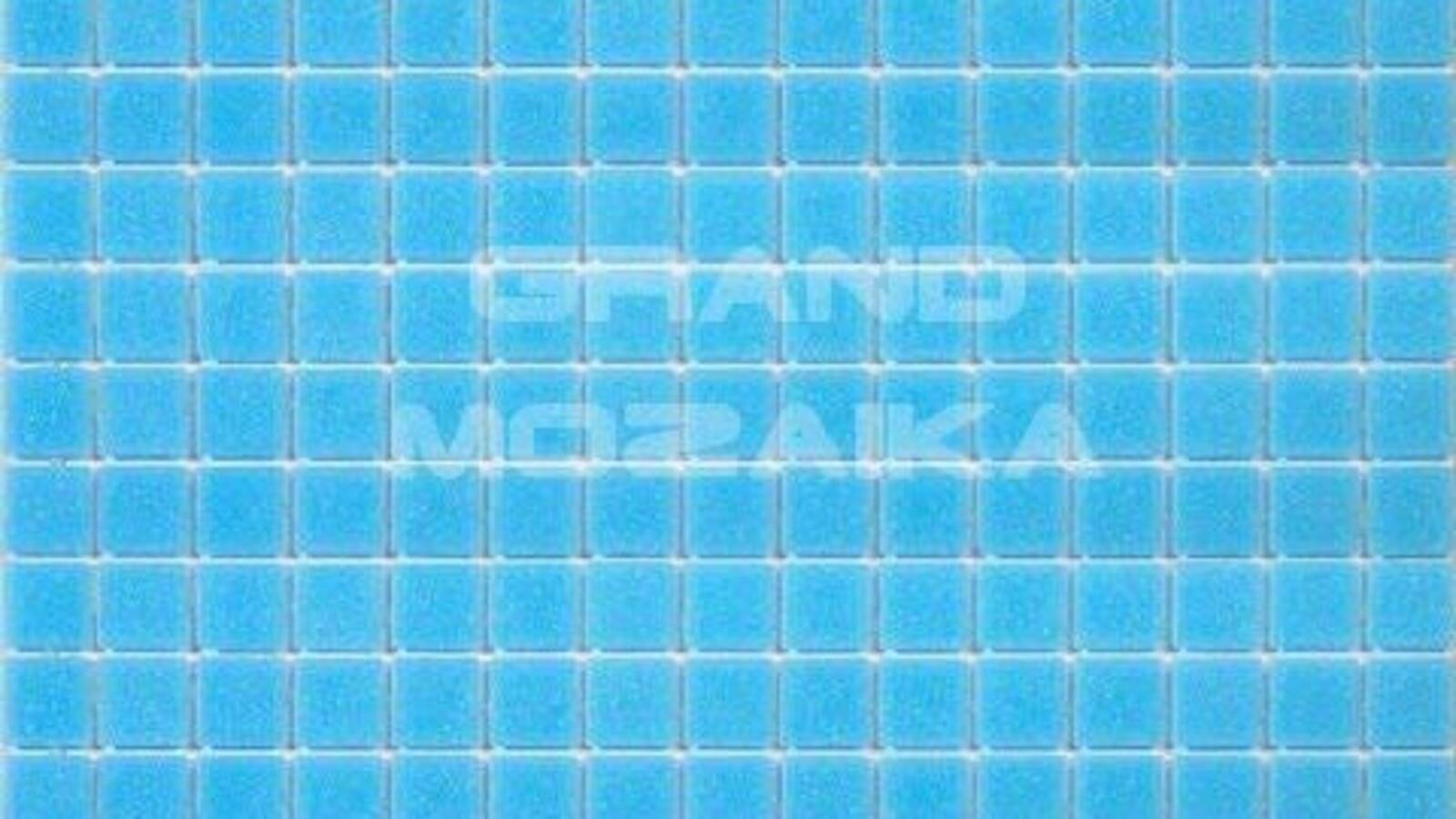 Стеклянная мозаика однородного насыщенного голубого цвета серии Sandy. Поверхность мозаики глянцевая, размер чипа - 20х20 мм. Размер сетки 327х327 мм. Такая мозаика украсит поверхность бассейна любой формы и размера.