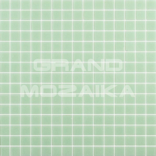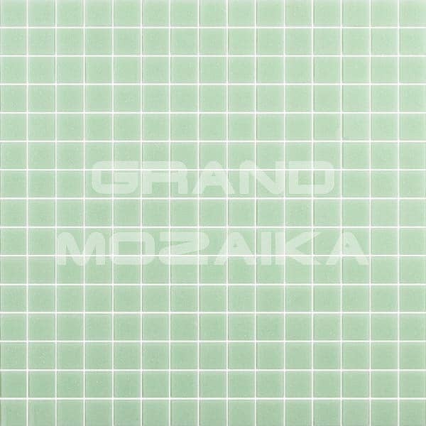 Стеклянная мозаика однородного бледно-зеленого цвета серии Sandy. Поверхность мозаики глянцевая, размер чипа - 20х20 мм. Размер сетки 327х327 мм. Такая мозаика украсит поверхность бассейна любой формы и размера.