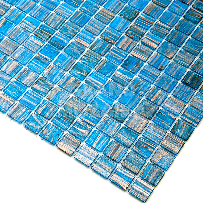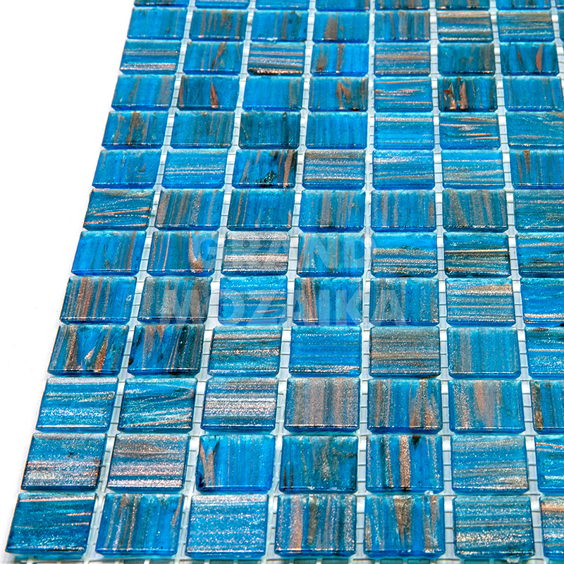 Мозаика для бассейнов серии Stella собрана из кусочков размером 20х20 мм. Каждый кусочек голубого цвета не похож на соседний своим необычным размытым рисунком, напоминающим натуральный камень. Эта мозаика будет смотреться в интерьере вашего бассейна гармонично и празднично.