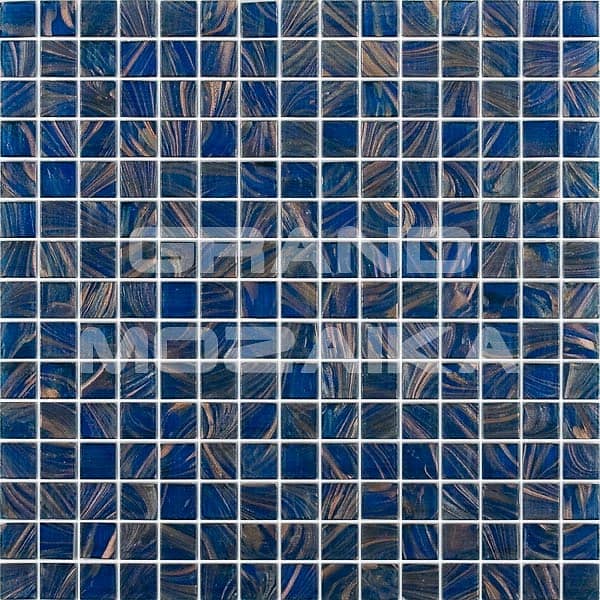 Мозаика для бассейнов серии Stella собрана из кусочков размером 20х20 мм. Каждый кусочек темно-синего оттенка не похож на соседний своим необычным размытым рисунком, напоминающим натуральный полудрагоценный камень. Такая мозаика добавит колорита любому бассейну, сауне или ванной комнате.