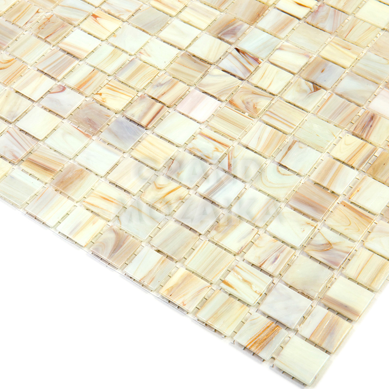 Мозаика для бассейнов серии Stella собрана из кусочков размером 20х20 мм. Каждый кусочек бежевого цвета не похож на соседний своим необычным размытым рисунком, напоминающим натуральный камень. Эта мозаика будет смотреться в интерьере вашего бассейна гармонично и празднично.
