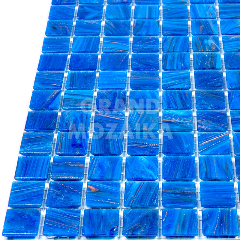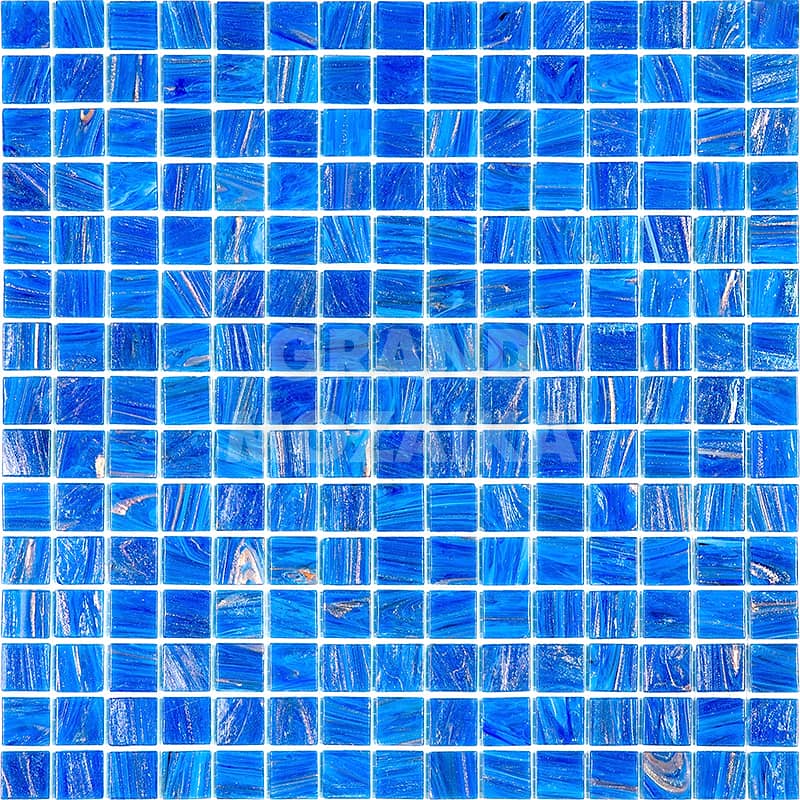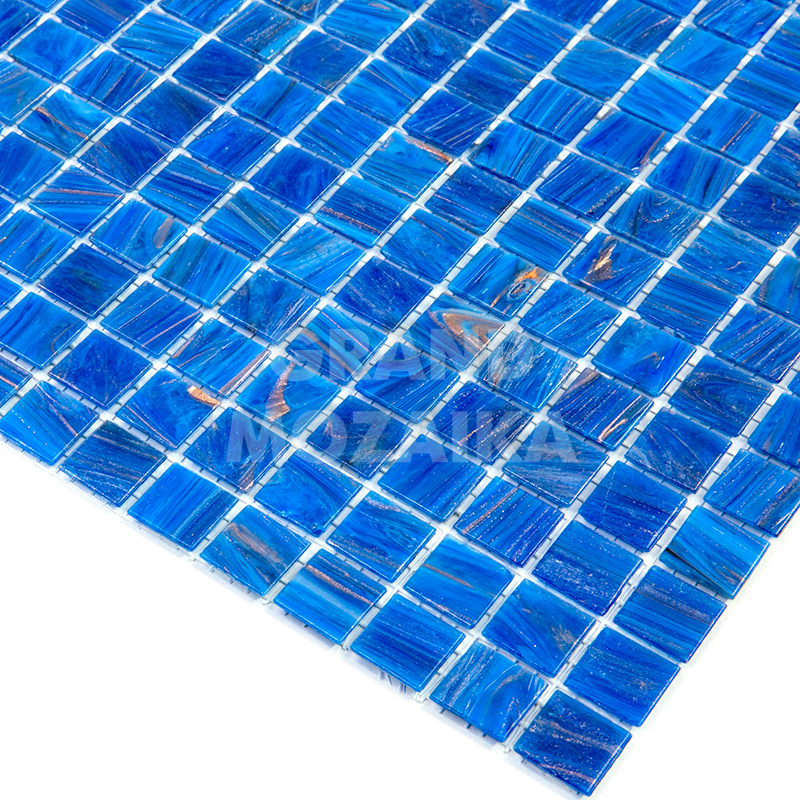 Мозаика для бассейнов серии Stella собрана из кусочков размером 20х20 мм. Каждый кусочек ярко-голубого цвета не похож на соседний своим необычным размытым рисунком, напоминающим натуральный камень. Полотно размером 327х327 мм легко в укладке и не требует особых навыков.