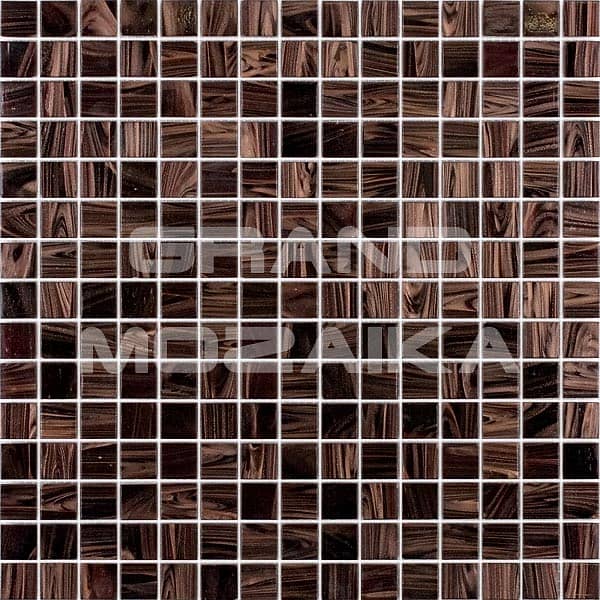 Мозаика для бассейнов серии Смеси из кусочков размером 20х20 см. Полотно 327х327 состоит из кусочков темно-коричневого цвета, дополнено мозаикой с необычным размытым рисунком того же оттенка. Такое полотно украсит любой бассейн и подойдет как для внутренней его отделки так и для внешней.
