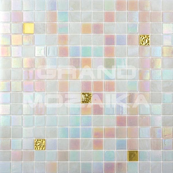 Мозаика для бассейнов серии Смеси состоит из маленьких кусочков размером 20х20 мм. Сочетание кусочков персикового и голубого цвета делает полотно не похожим на другие, а хаотическое вкрапление золотых мозаик придает роскоши. Полотно размером 327х327 удобно в монтаже и не требует особых навыков.Такая мозаика будет необычно смотреться в интерьере бассейна в стиле модерн.