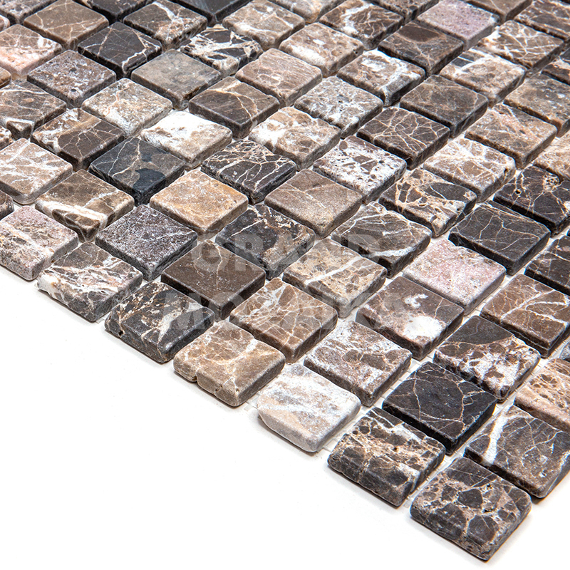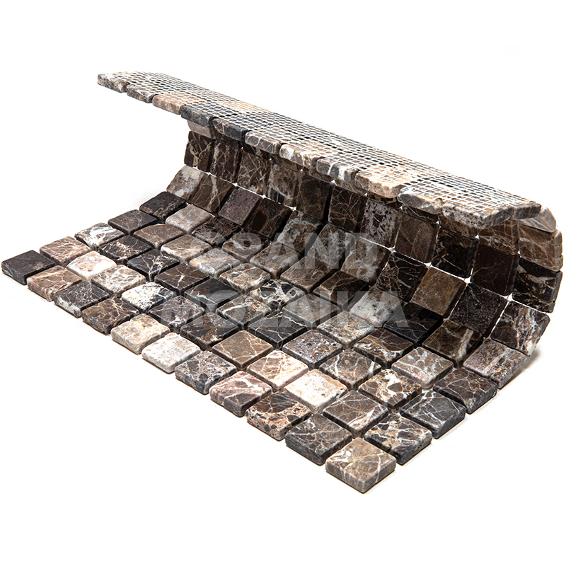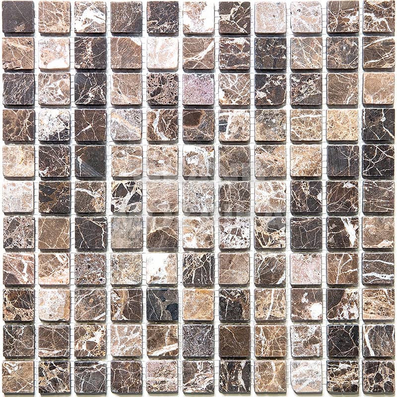 Мозаика из натурального камня серии Adriatica состоит из кусочков размером 25х25 мм. Полотно 305х305 из состаренного коричневого мрамора удобно в монтаже и не требует особых навыков. Такая мозаика гарантированно прослужит долгие десятилетия и не потеряет своих первоначальных свойств.