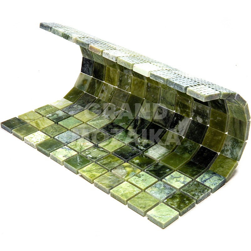 Мозаика из натурального камня серии Adriatica состоит из кусочков размером 25х25 мм. Полотно 305х305 из полированного серо-зеленого мрамора удобно в монтаже и не требует особых навыков. Такая мозаика гарантированно прослужит долгие десятилетия и не потеряет своих первоначальных свойств.