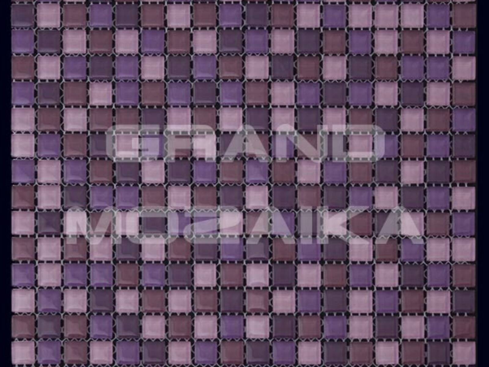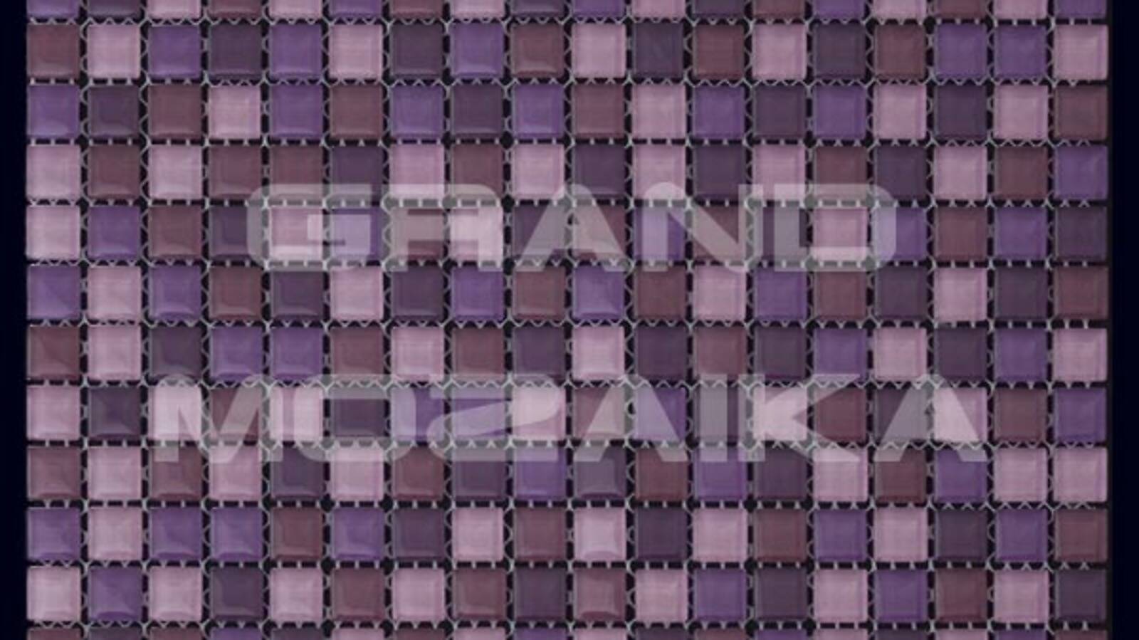Стеклянная мозаика серии Mix. Состоит из мелких (15х15 мм) кусочков различных оттенков фиолетового цвета. Идеально подходит для отделки ванных комнат и других помещений. Поверхность глянцевая, размер сетки 300х300 мм. Толщина мозаики - 4 мм.