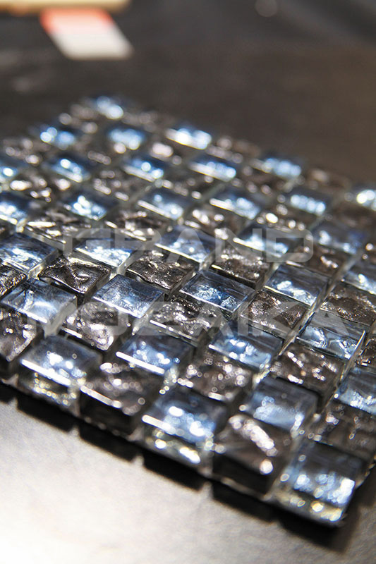 Стеклянная мозаика серии Dune состоит из маленьких кусочков размером 15х15 мм. Мозаика выполнена из кусочков двух контрастных цветов серого и синего расположенных в шахматном порядке. Оригинальная фактура кусочков придает объема полотну. Такая мозаика может быть использована в интерьере ванных комнат, бассейнов и других помещений.