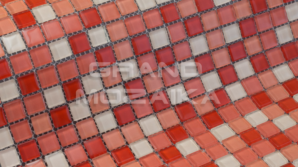 Стеклянная мозаика серии Crystal состоит из комбинации темных и светлых красных и бежевых модулей в определенной пропорции. Мозаичное панно крепится на сетке в формате 305х305 мм. Размер мини-чипа 15х15х4 мм. Поверхность полотна гладкая, блестящая. С помощью мозаики микс серии Crystal можно создать желаемое дизайнерское решение при сравнительно небольших затратах на материалы.