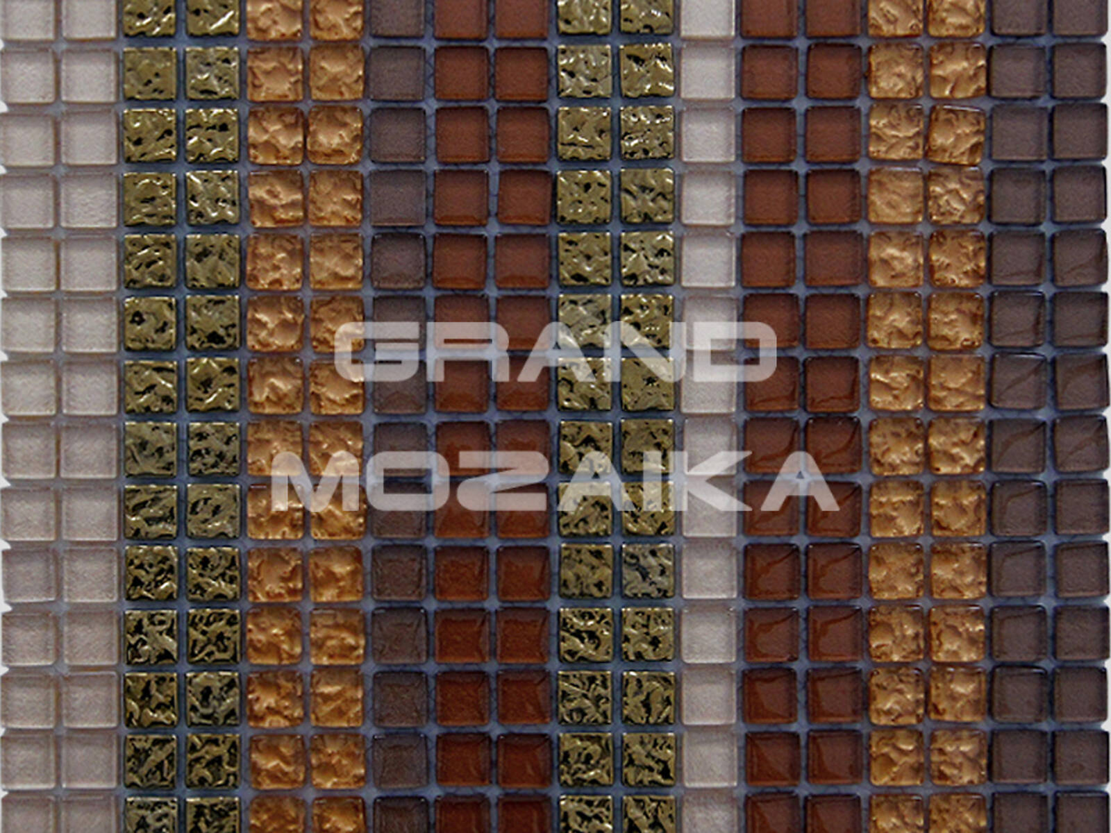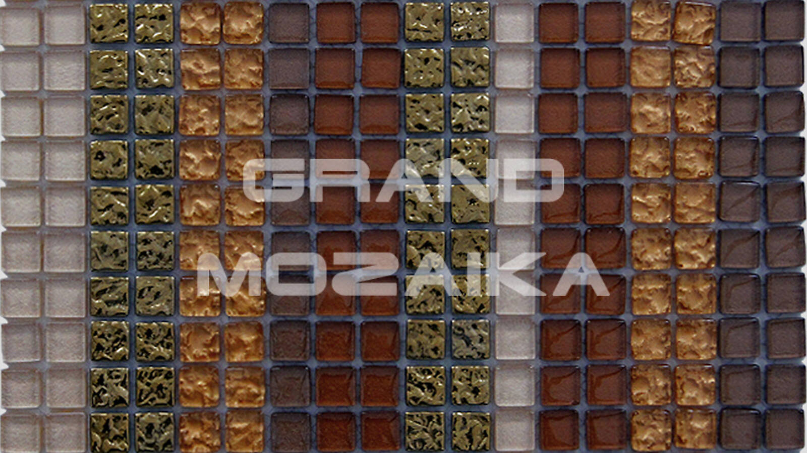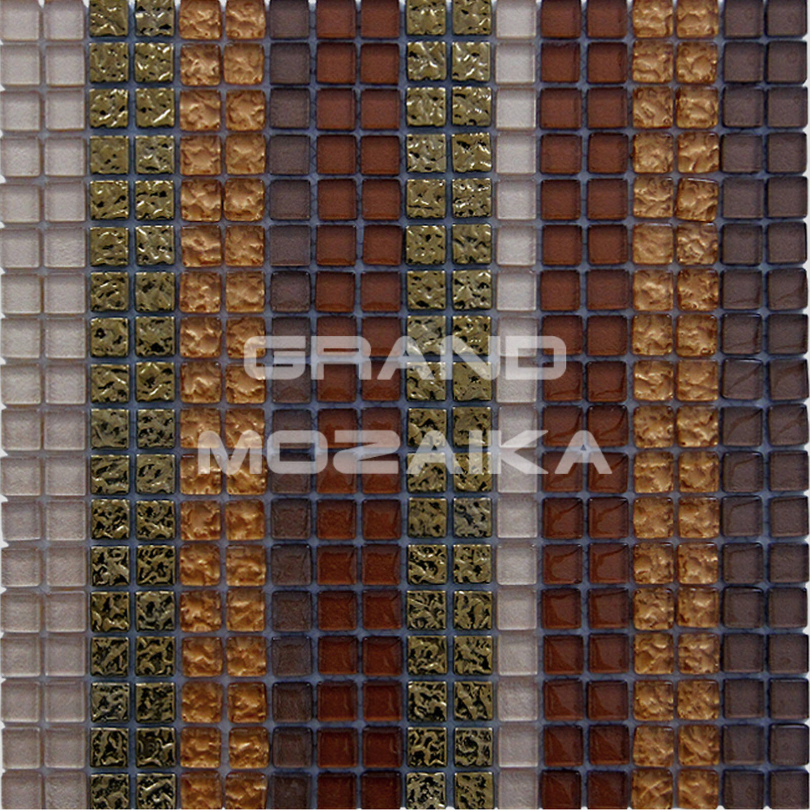 Стеклянная мозаика, серия ORRO Glass, цвет: коричневый, золотой, бежевый, размер чипа (мм): 15x15
