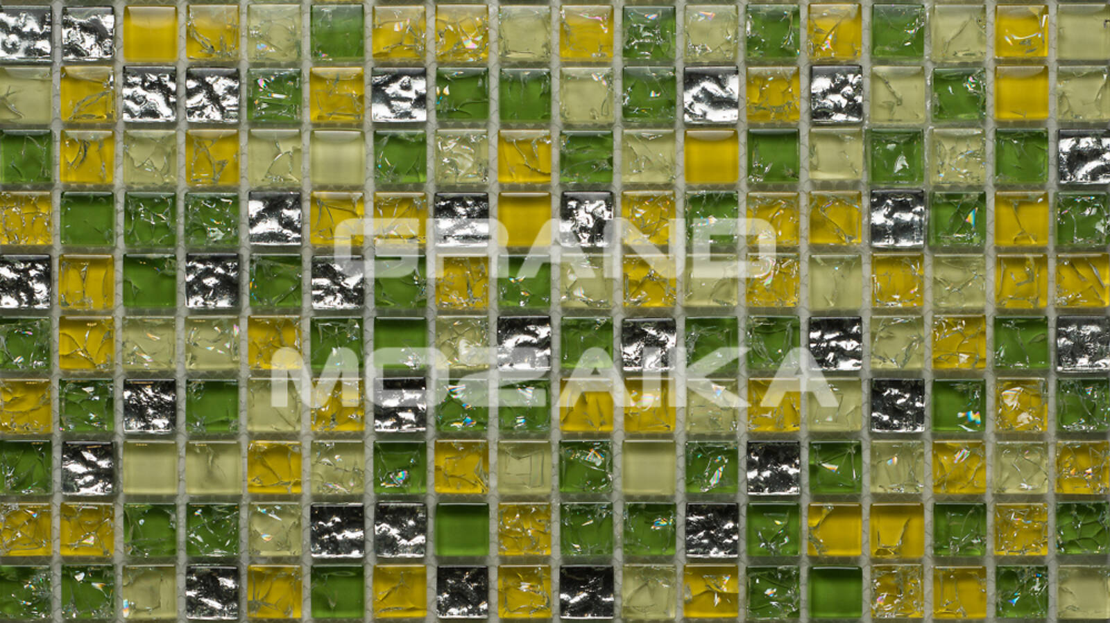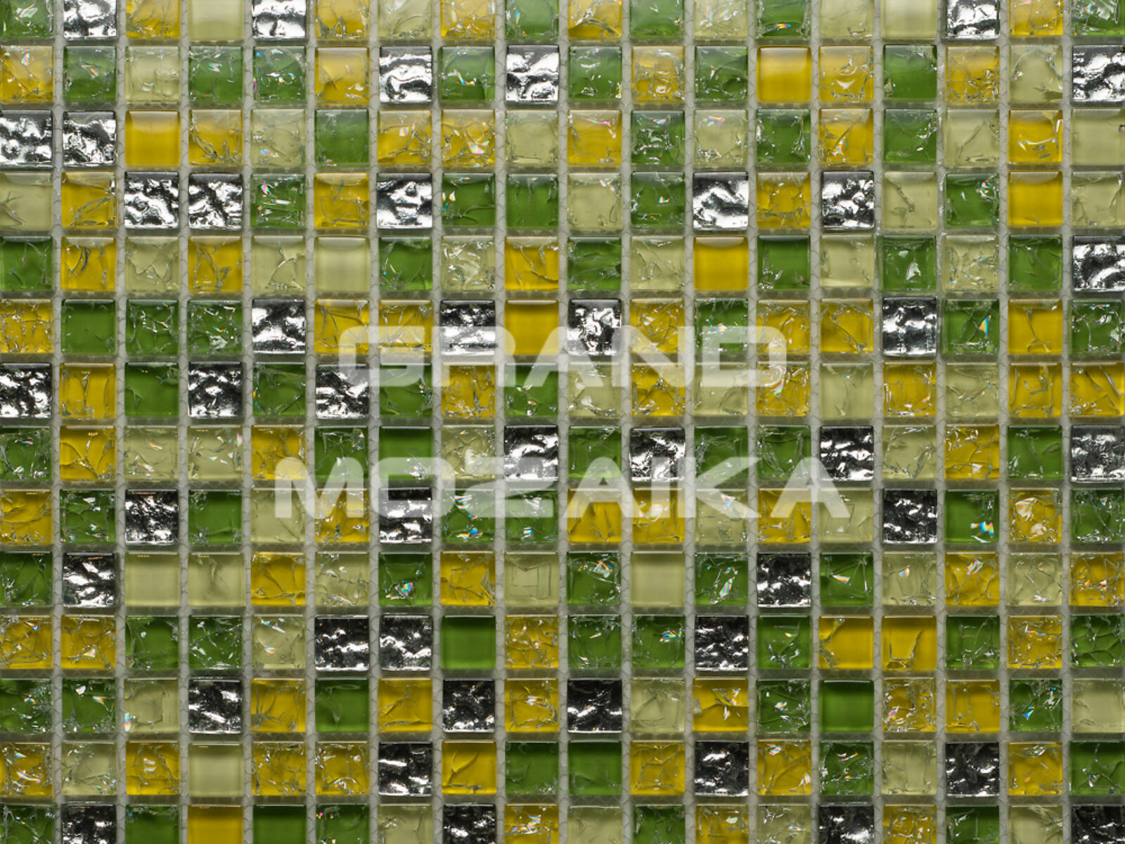 Стеклянная мозаика, серия ORRO Glass, цвет: желтый, зеленый, серебряный, размер чипа (мм): 15x15