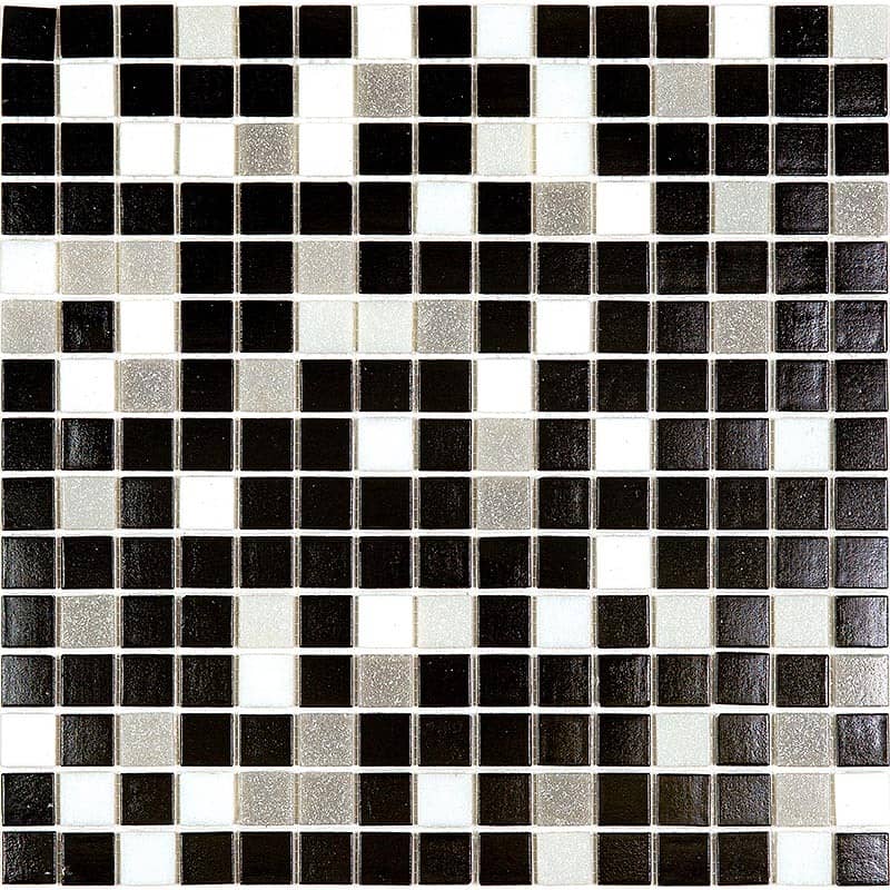 Мозаика для бассейнов серии Alma Pool выполнена из кусочков размером 20х20 см. Полотно 327х327 состоит из кусочков черно-серого цвета, не требует особых навыков монтажа.