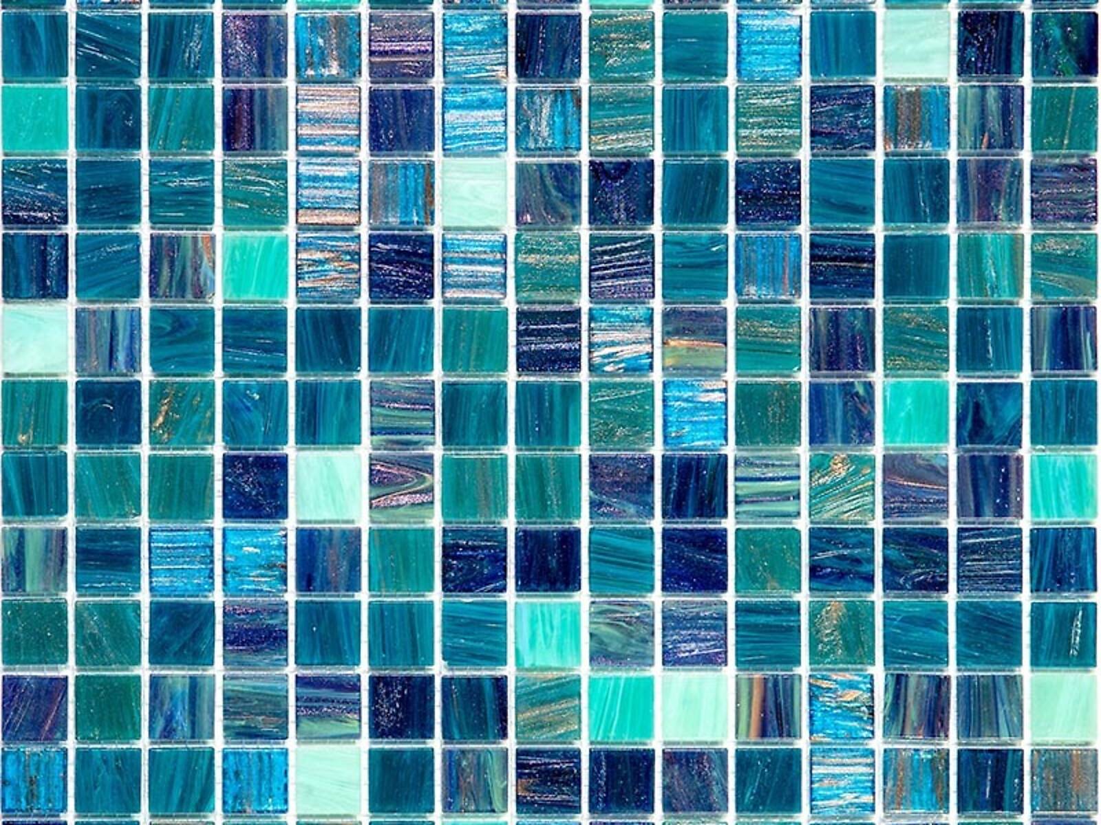 Стеклянная мозаика, серия Alma Pool, цвет: бирюзовый, зеленый, размер чипа (мм): 20x20