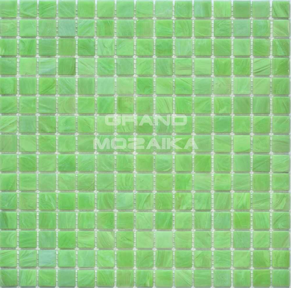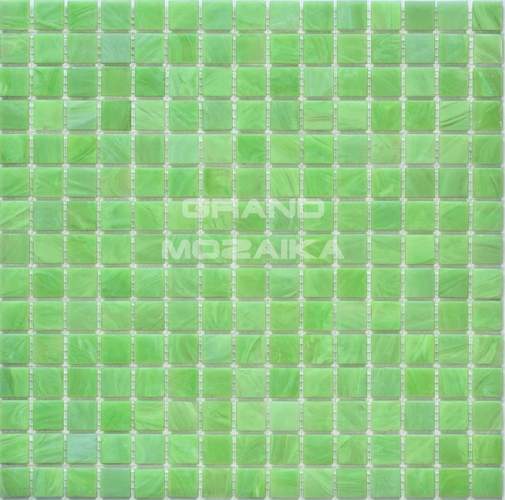 Стеклянная мозаика серии Alba. Цвет неоднородный – мутновато-зеленый, болотный. Рисунок под мрамор. Полотно состоит из плиток размером 20 на 20 мм и толщиной 4 мм. Отлично подходит для декора помещений с повышенной влажностью. Благодаря гладкой и прочной поверхности, на мозаичном стекле не селится грибок.