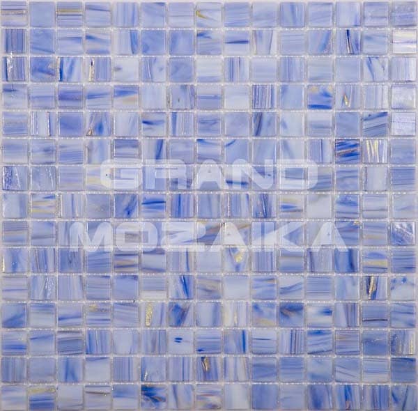 Представляемая мозаика серии Golden состоит из стеклянных плиток размером 20х20х4 мм. Полотно выполнено из мозаик бело-голубого цвета с синими и золотыми полосками. Монтаж - сетка. Размер листа 327*327 мм. Мозаика серии Golden отлично подходит для облицовки стен в банях, ванных комнатах и других помещений с повышенной влажностью.