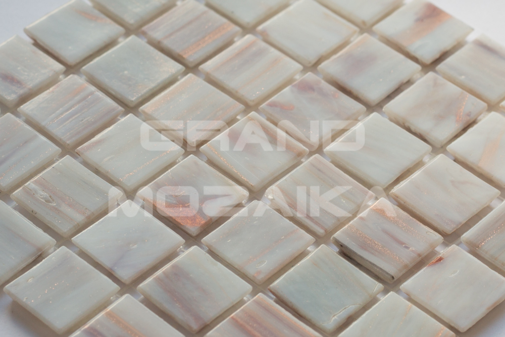 Стеклянная мозаика с добавлением авантюрина и смальты, серия Aurora, цвет: белый, размер чипа (мм): 20x20