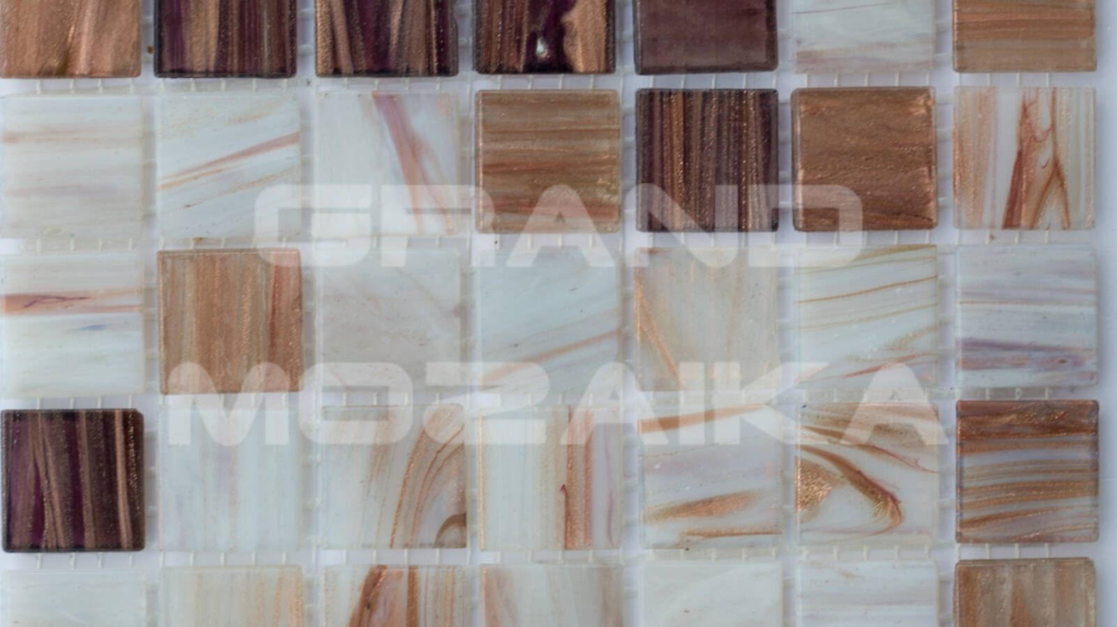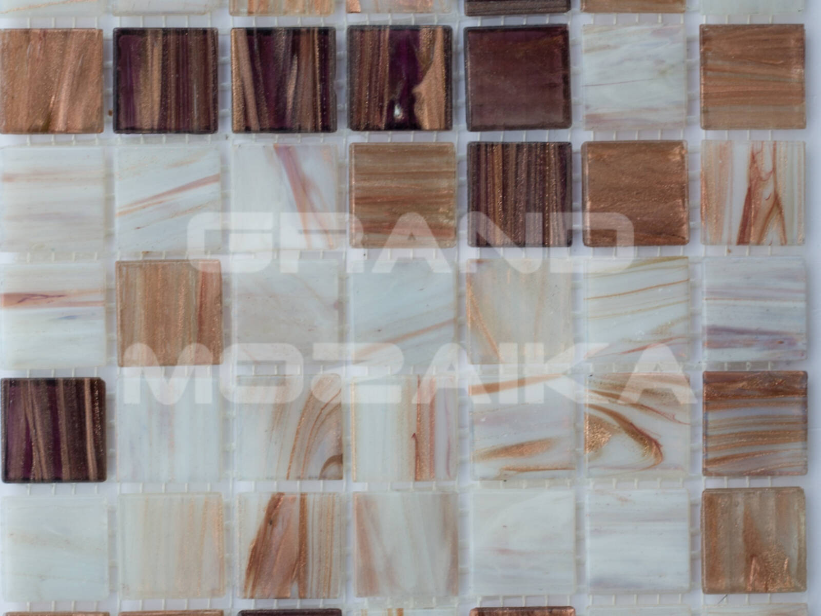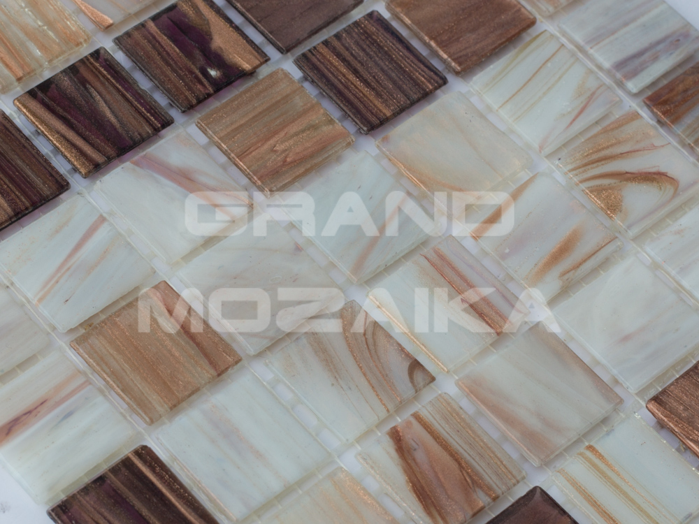 Стеклянная мозаика, серия Mix HG, цвет: бежевый, белый, фиолетовый, размер чипа (мм): 20x20