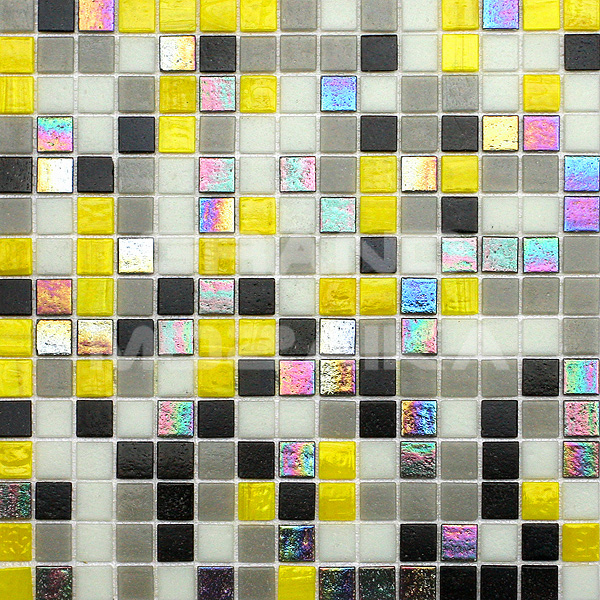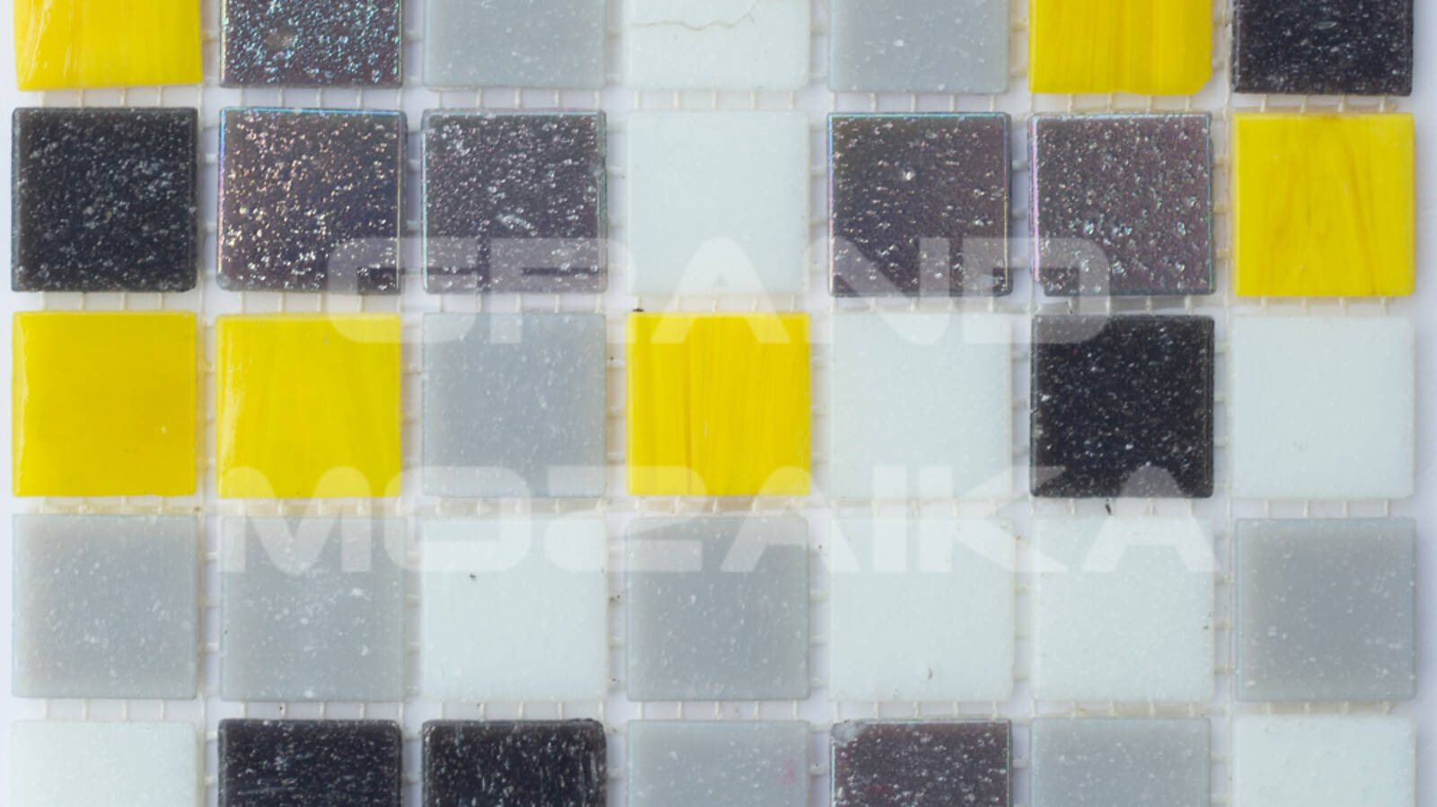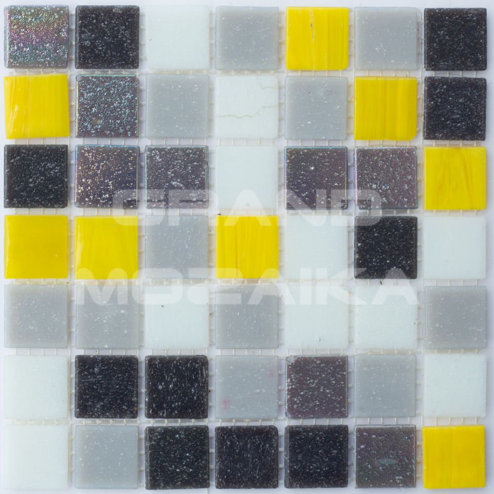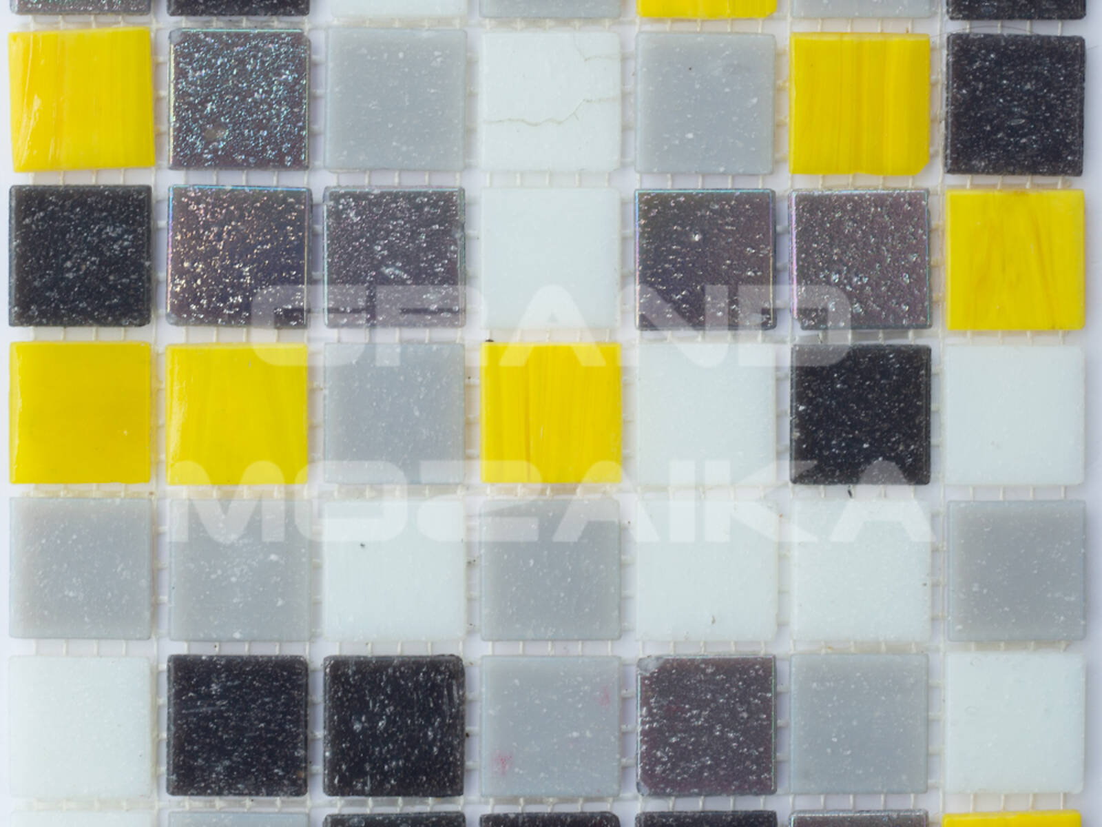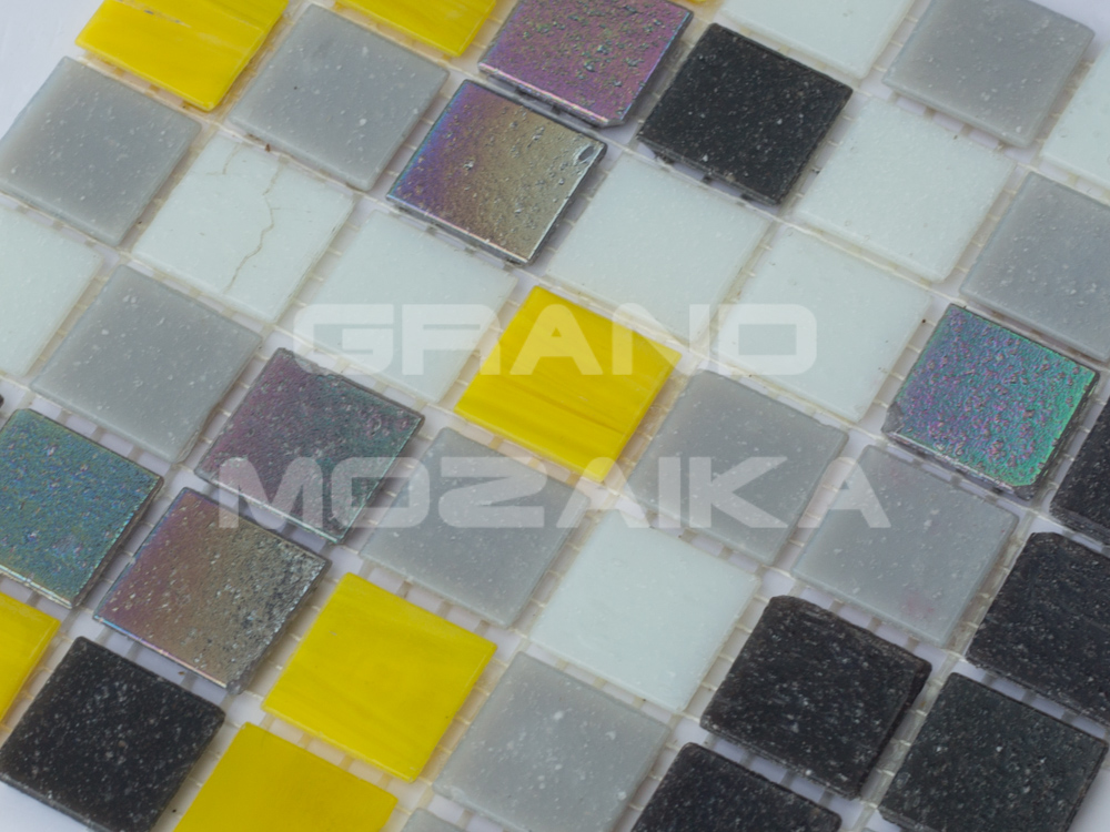 Стеклянная мозаика, серия Mix JNJ, цвет: белый, желтый, серый, сиреневый, размер чипа (мм): 20x20