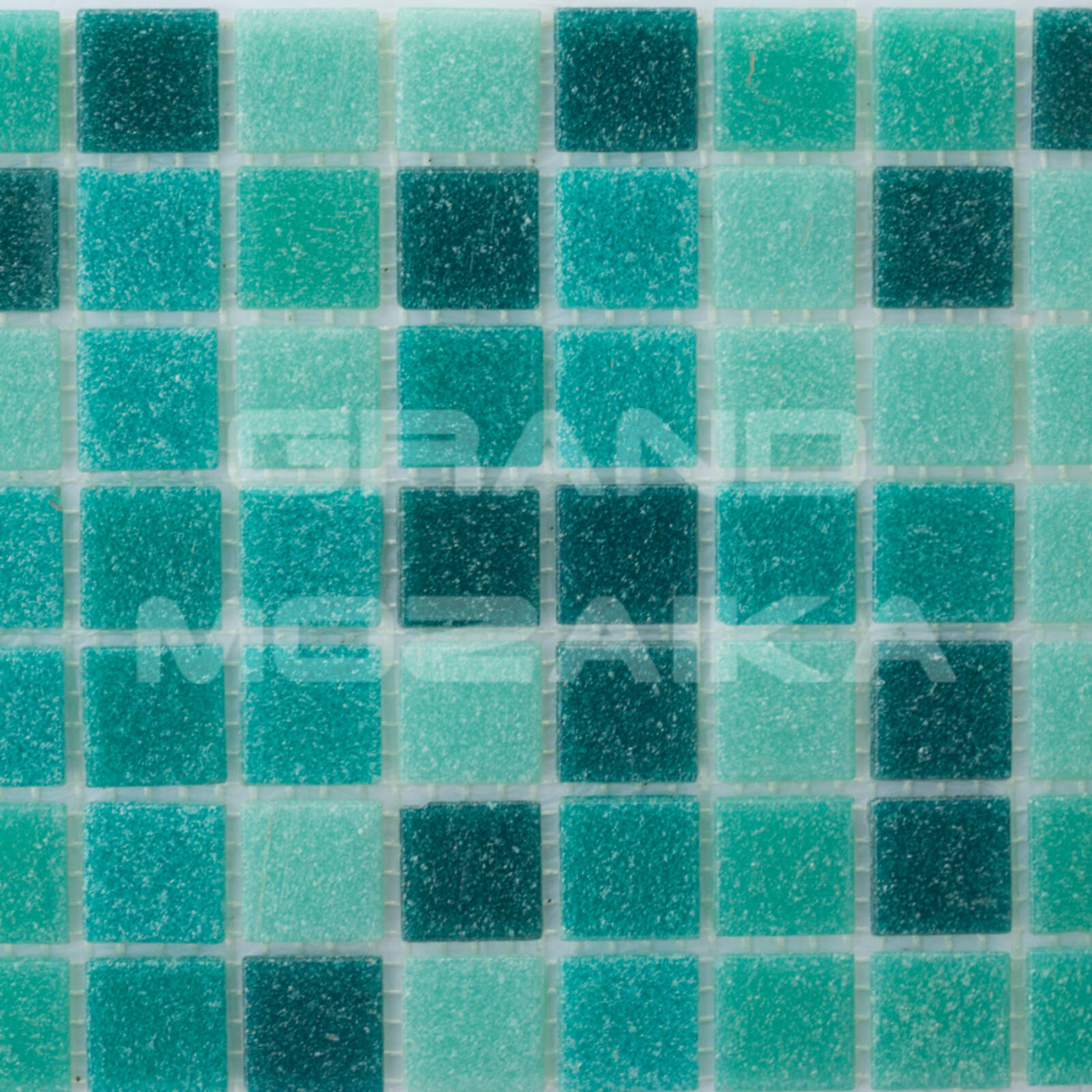 Стеклянная мозаика, серия Mix HG (на сетке), цвет: бирюзовый, размер чипа (мм): 20x20
