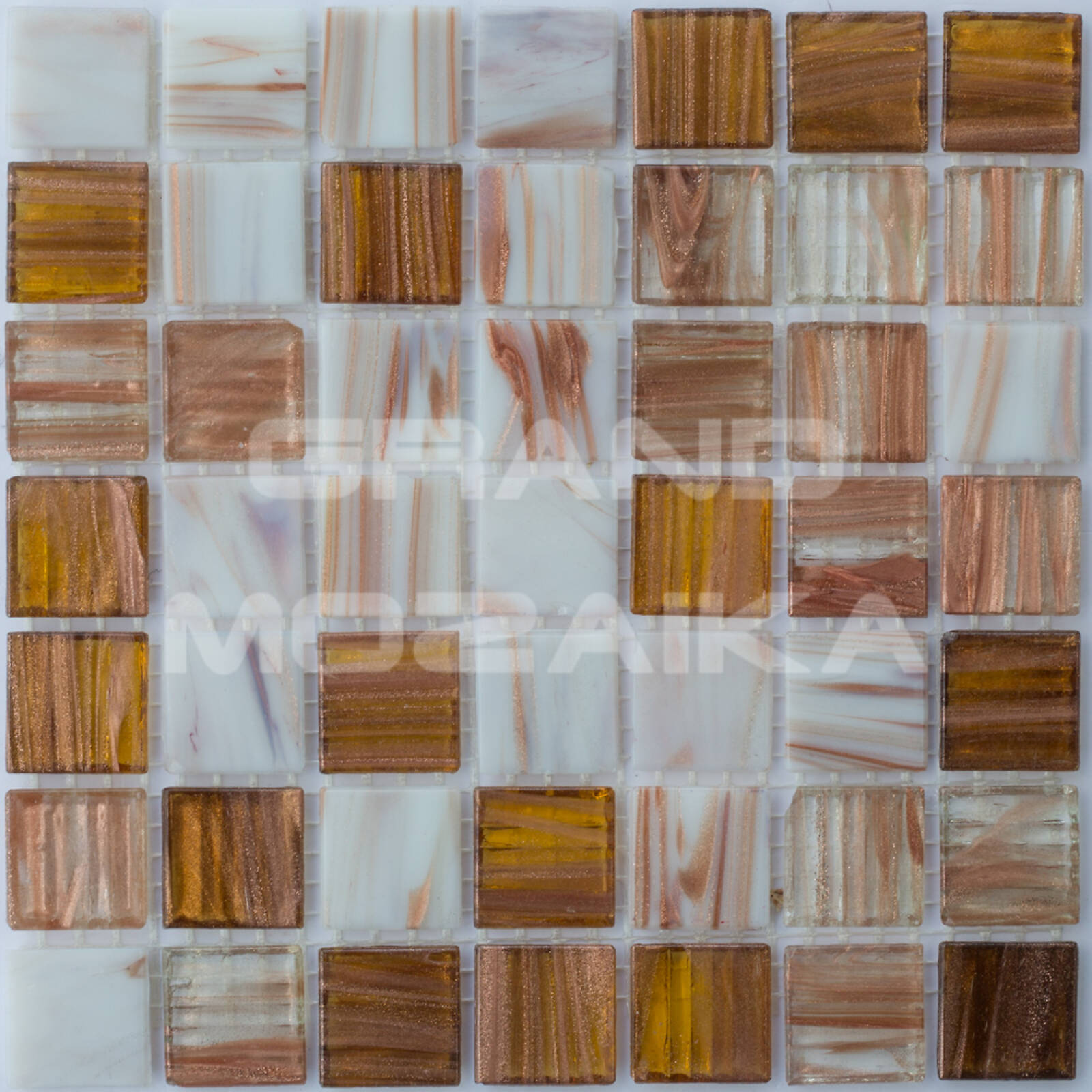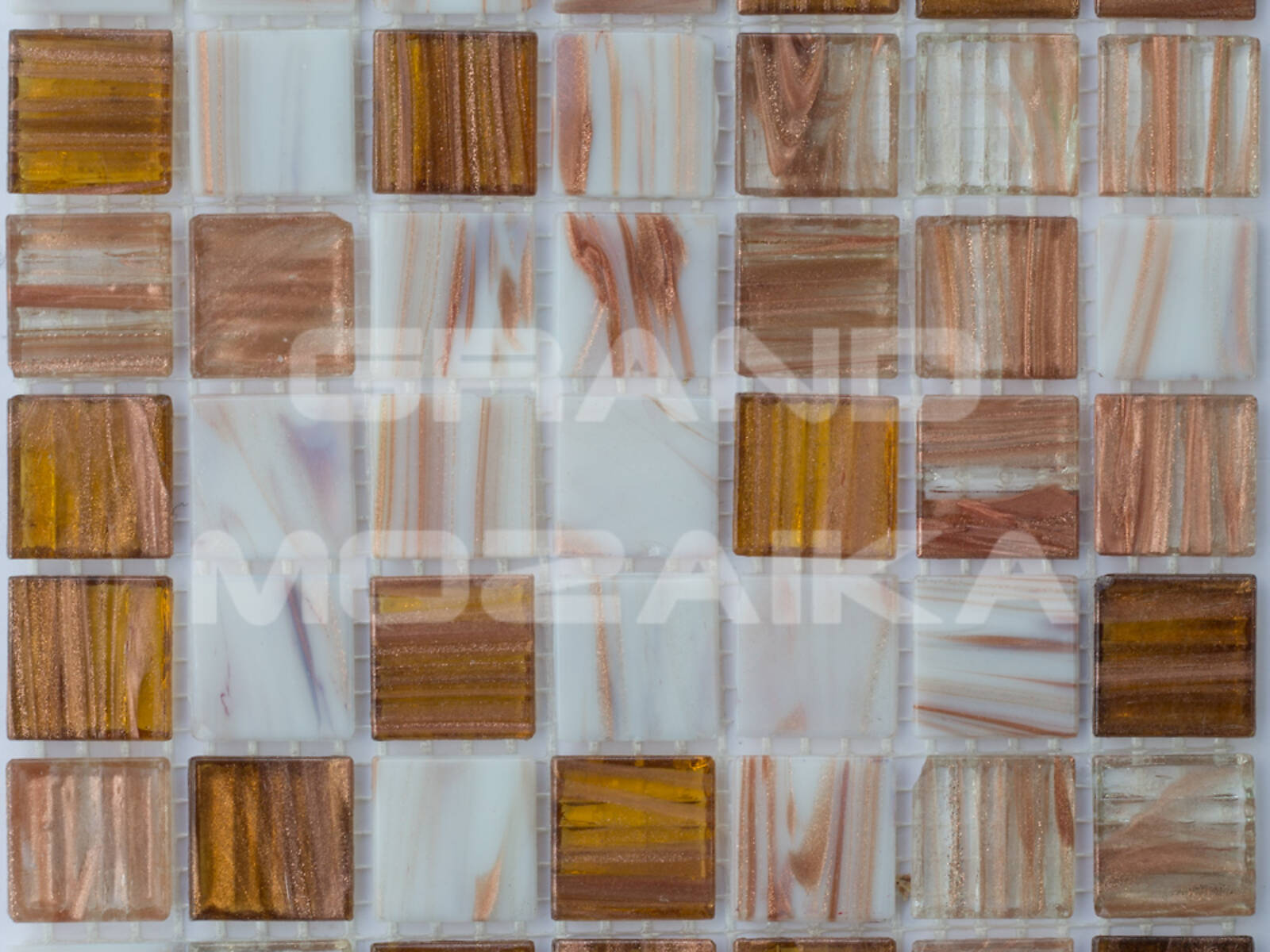 Стеклянная мозаика, серия Mix JNJ, цвет: белый, бежевый, размер чипа (мм): 20x20