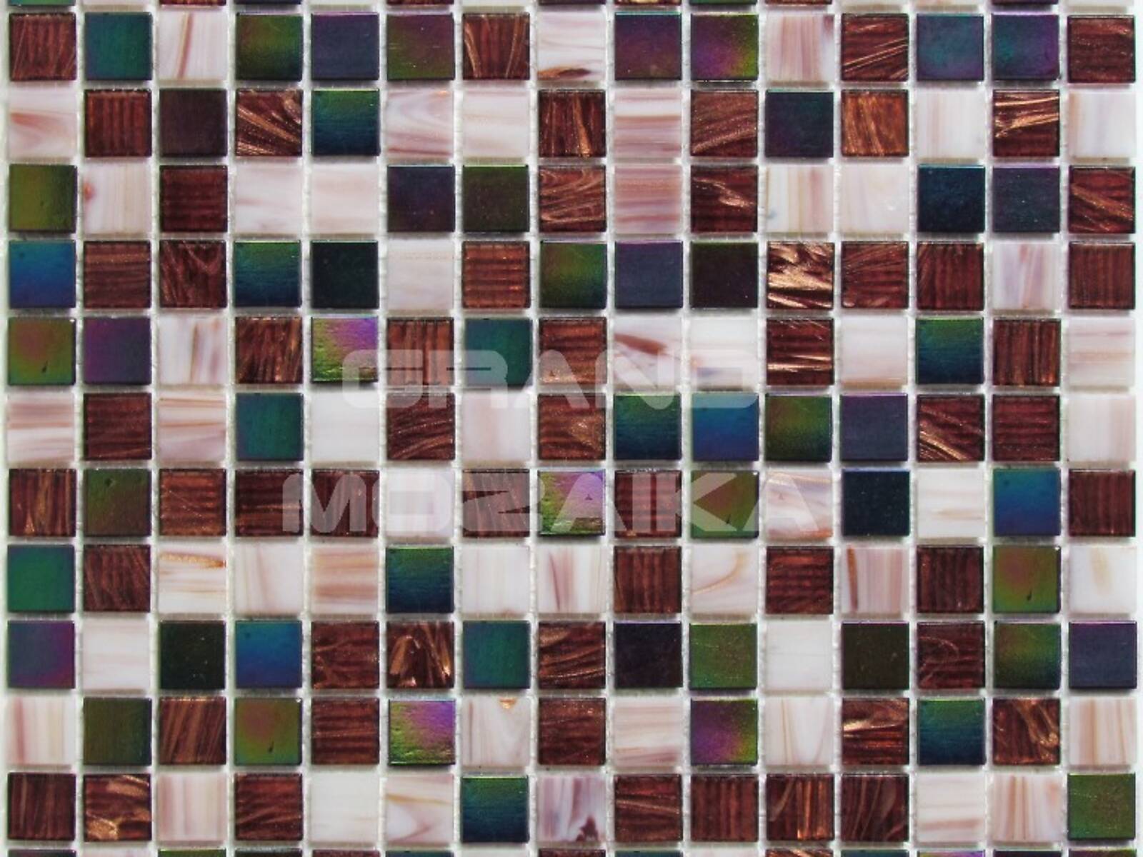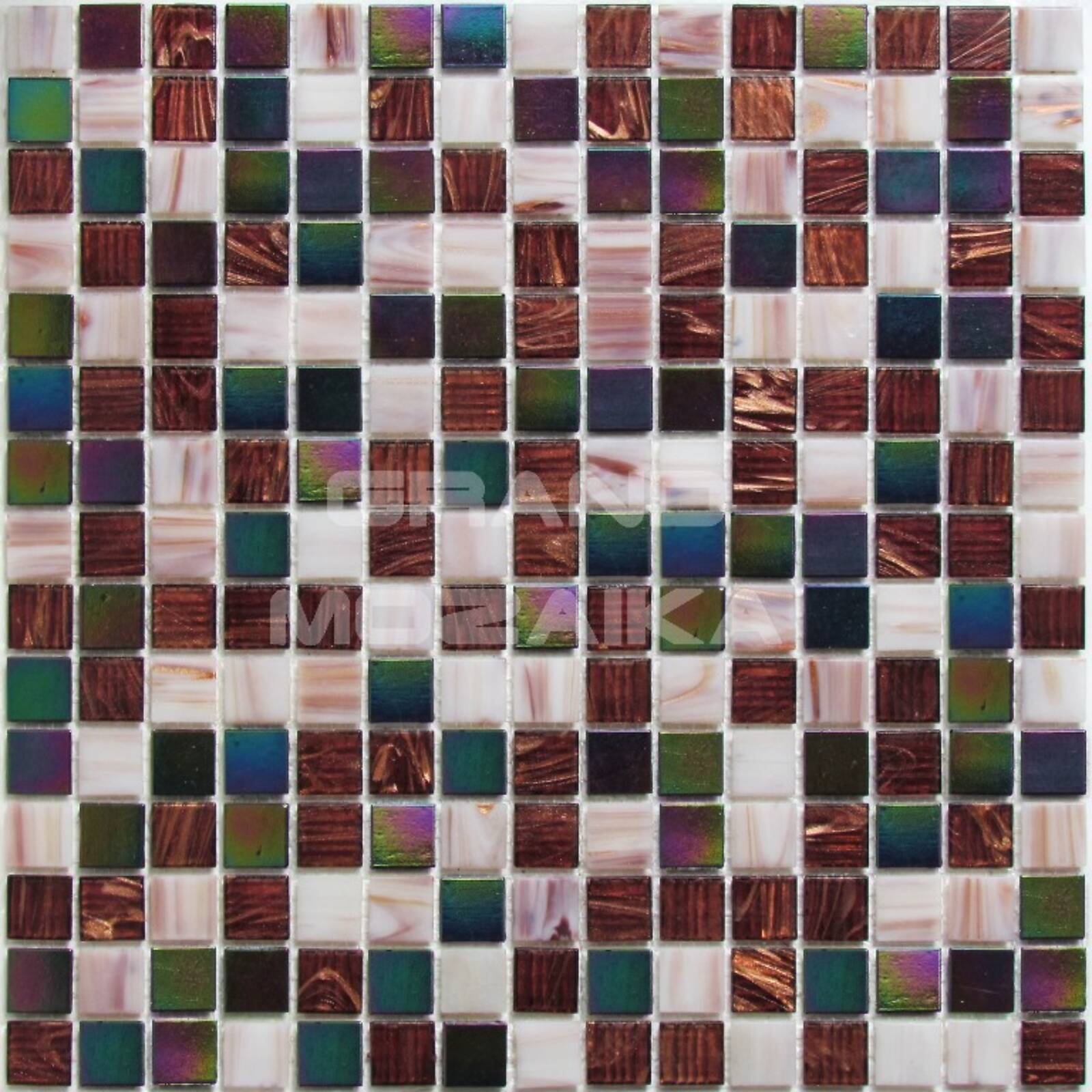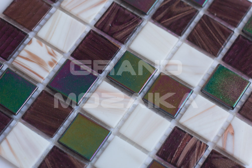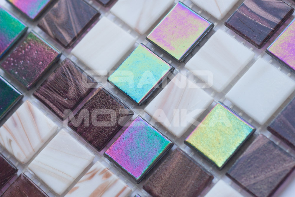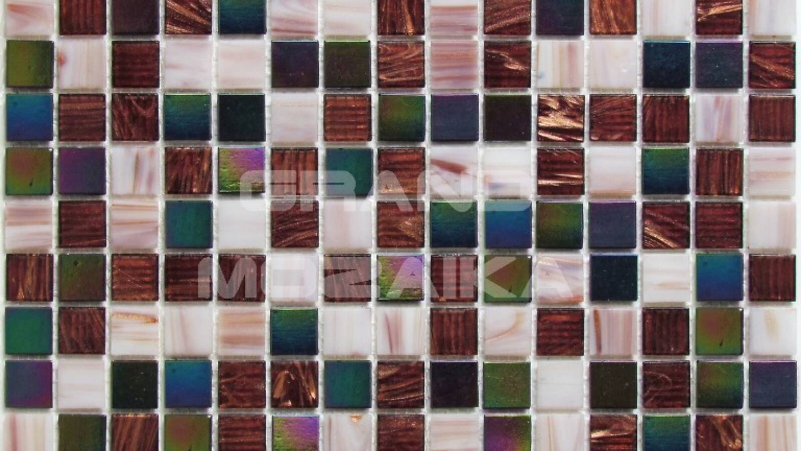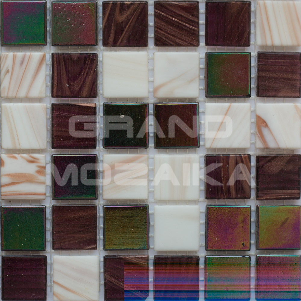 Стеклянная мозаика, серия Bona Ave, цвет: белый, коричневый, размер чипа (мм): 20x20