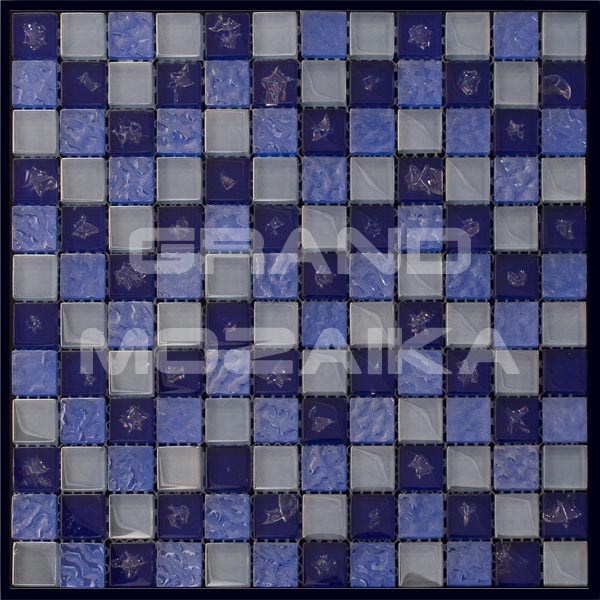 Стеклянная мозаика серия Ice Flowers, цвет: синий, голубой, размер чипа (мм): 23.5x23.5