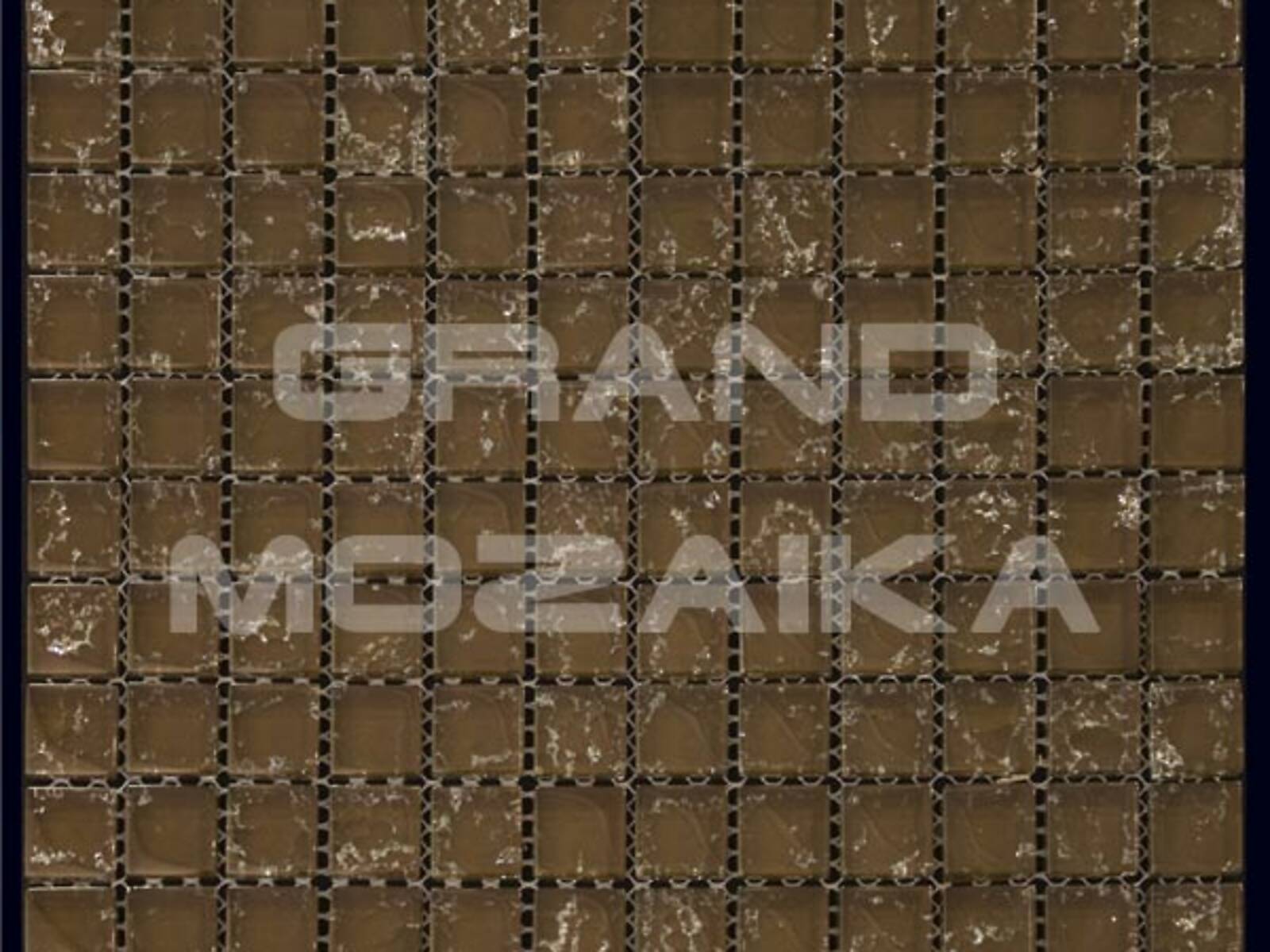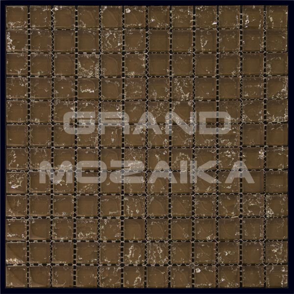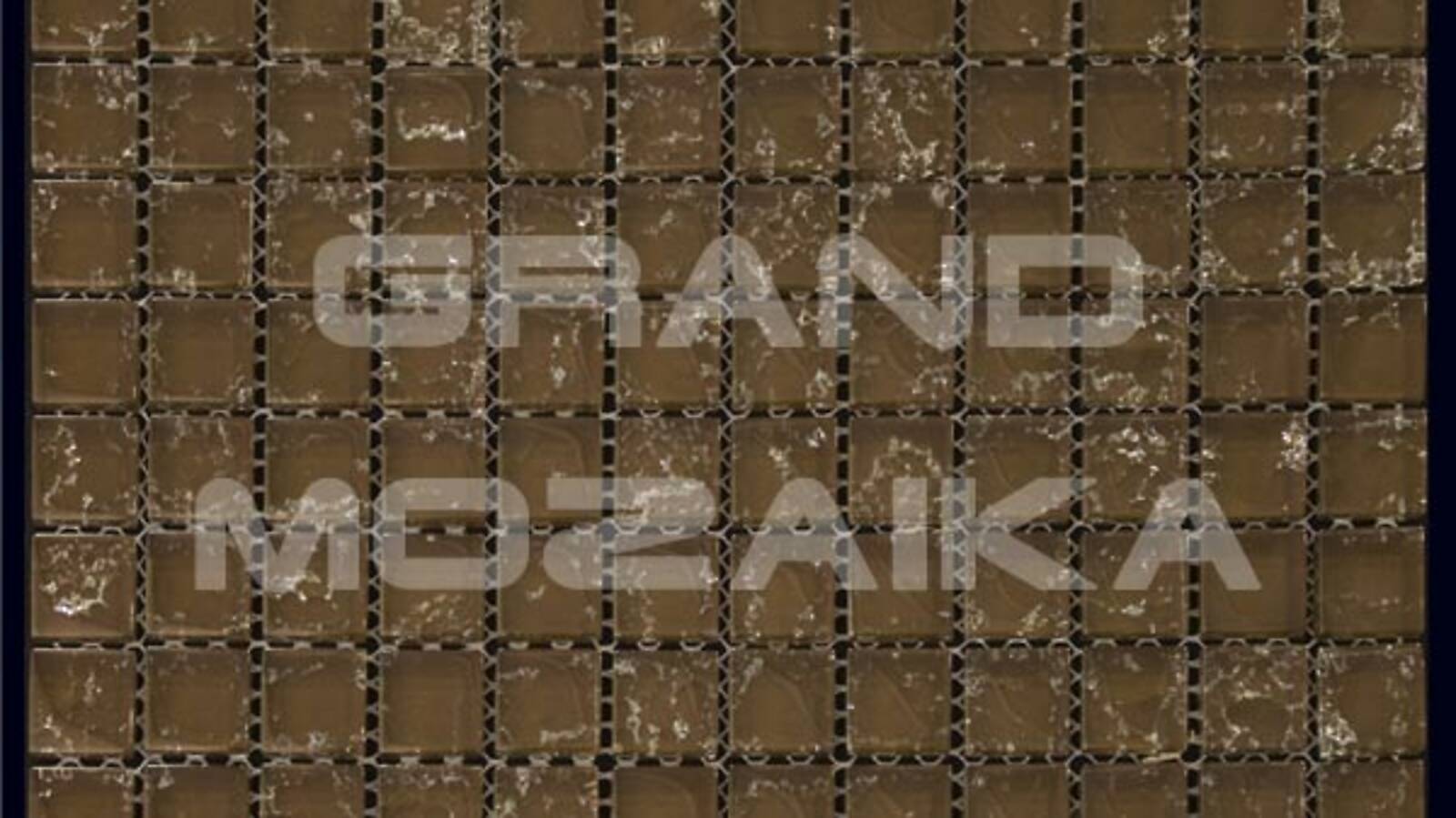 Стеклянная мозаика коричневого цвета серии Ice Flowers. Состоит из мелких (23,5х23,5 мм) кусочков. Необычный рисунок добавляет полотну объема и оригинальности. Идеально подходит для отделки ванных комнат и других помещений. Поверхность глянцевая, размер сетки 300х300 мм. Толщина мозаики - 8 мм.