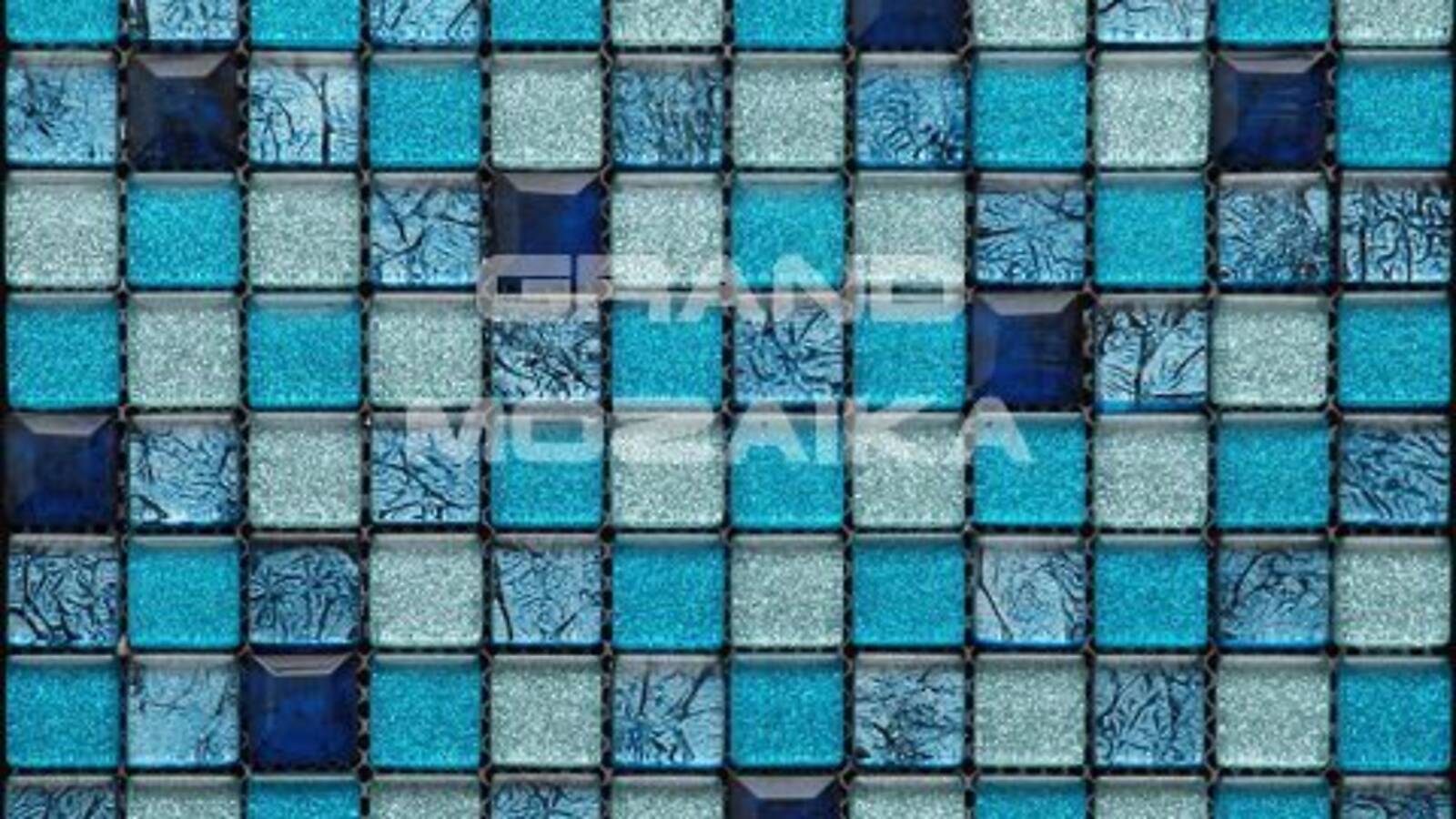 Стеклянная мозаика, серия Dune, цвет: бирюзовый, синий, размер чипа (мм): 23x23