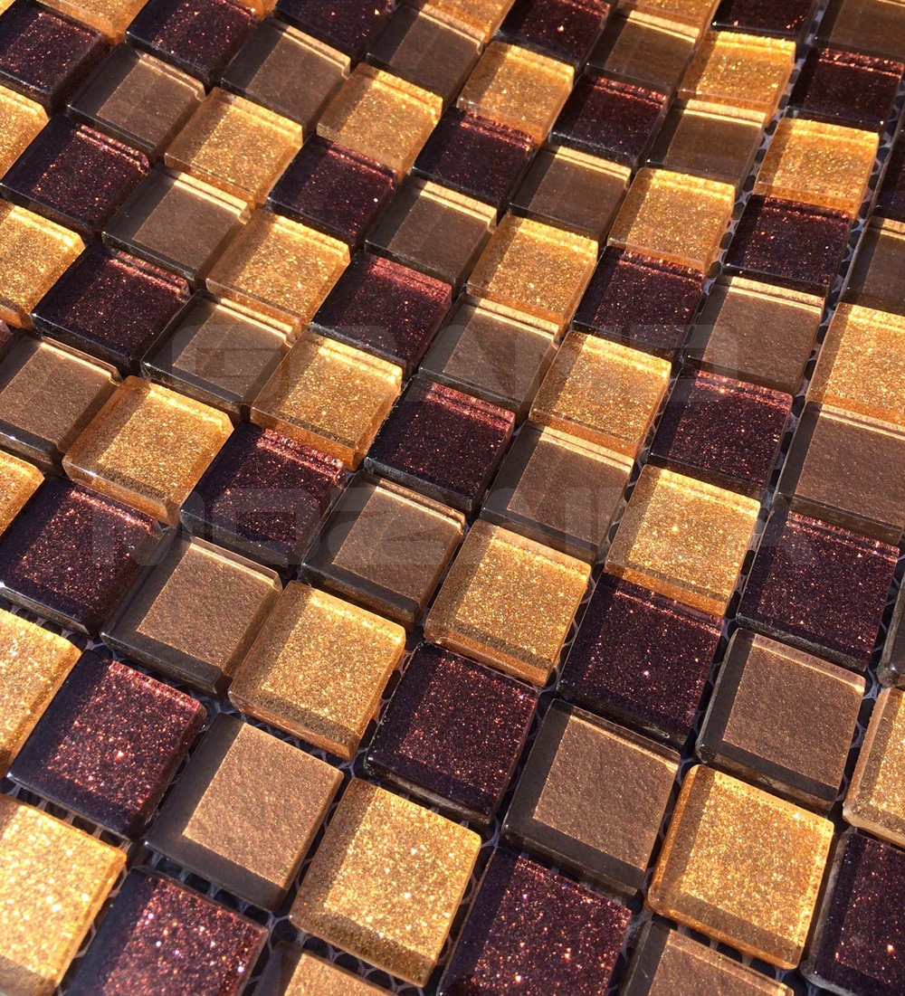 Стеклянная мозаика, серия ORRO Glass, цвет: коричневый, золотой, размер чипа (мм): 23x23