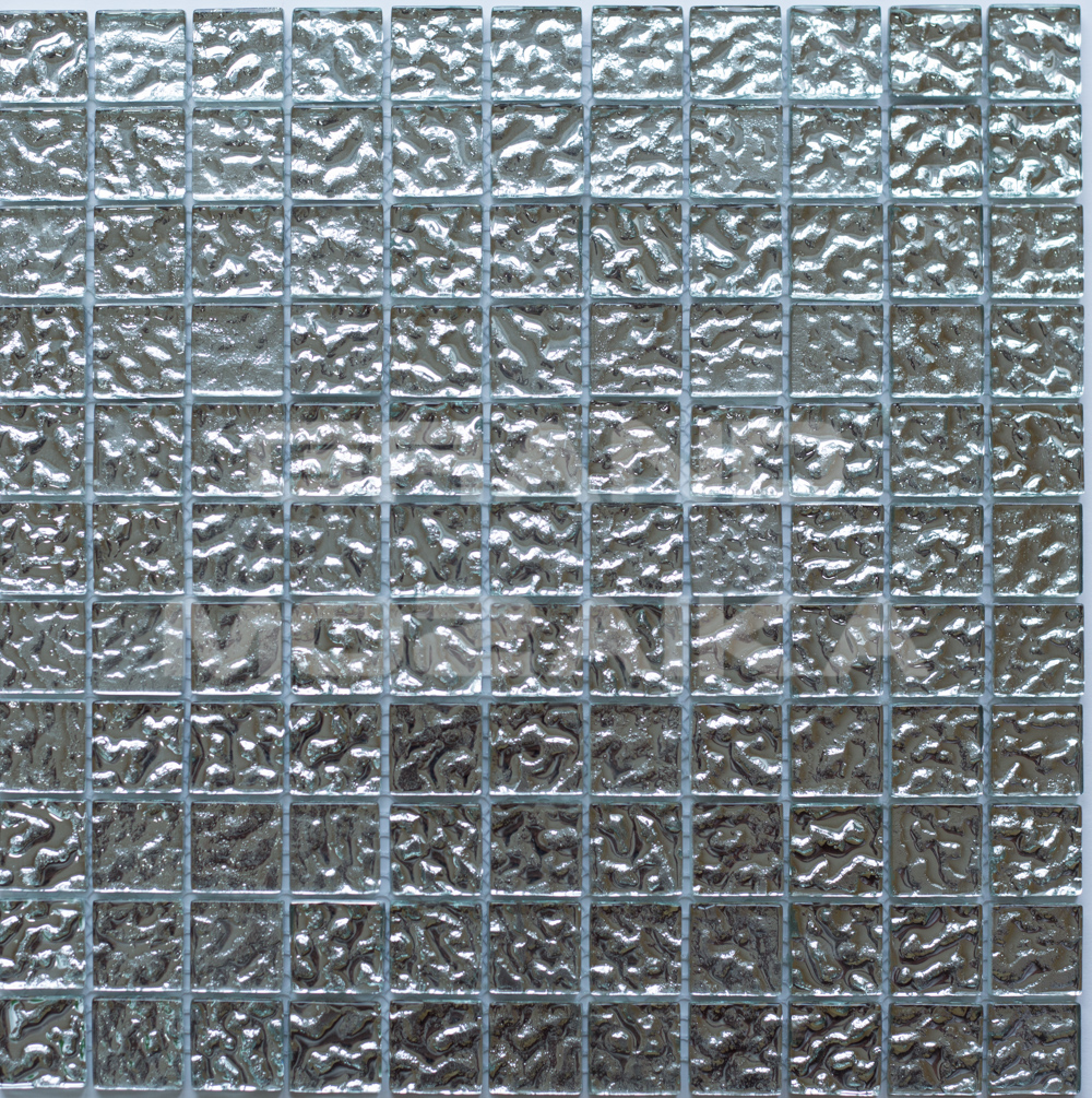 Оригинальная мозаика серии Metall выполненного из кусочков серебряного цвета с необычной фактурой. Поверхность мозаики глянцевая, размер чипа - 25,8х25,8 мм. Размер сетки 300х300 мм. Вы можете использовать такую мозаику в самых различных помещениях, так как она отличается высокой водонепроницаемостью и прочностью.