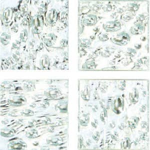 Мозаика серии Gold & Mirrore серебряного цвета с рисунком, напоминающий капли воды. Материал - стекло, с нанесенным на поверхность слоем, имитирующим серебро. Мозаика имеет площадь чипов 25x25мм, приблизительную толщину 4мм, к задней части мозаики прикреплена сетка размером 300х300 мм. Идеально вписывается как деталь интерьера в жилые помещения, центры досуга и отдыха.
