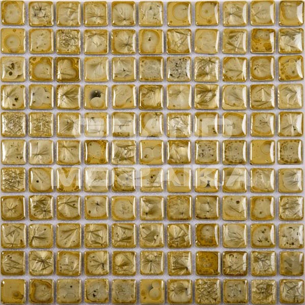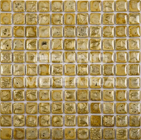 Представляемая мозаика серии Exclusive золотого цвета - это отдельная картинка (ракушки, звездочки, снежинки, капли) в каждой плиточке. Размер чипа 25*25*4 мм. Полотно тыльной стороной крепится к сетке размером 300х300 мм. Такая мозаика роскошно смотрится не только на горизонтальных поверхностях кухни и ванной комнаты, но и в качестве декора отдельных элементов интерьера, например, журнального столика.