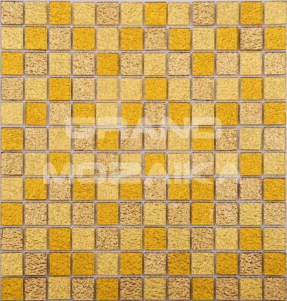 Мозаика микс серии Exclusive состоит из плиток желто-коричневых оттенков с необычной текстурой. Поверхность испещрена мелкими неровностями, что придает ей глубину и объем. Стеклянные плитки 25х25х4 мм. Полотно тыльной стороной крепится к сетке размером 300х300 мм. Мозаика устойчива к перепадам температур, что делает ее привлекательным материалом для отделки всех видов помещений