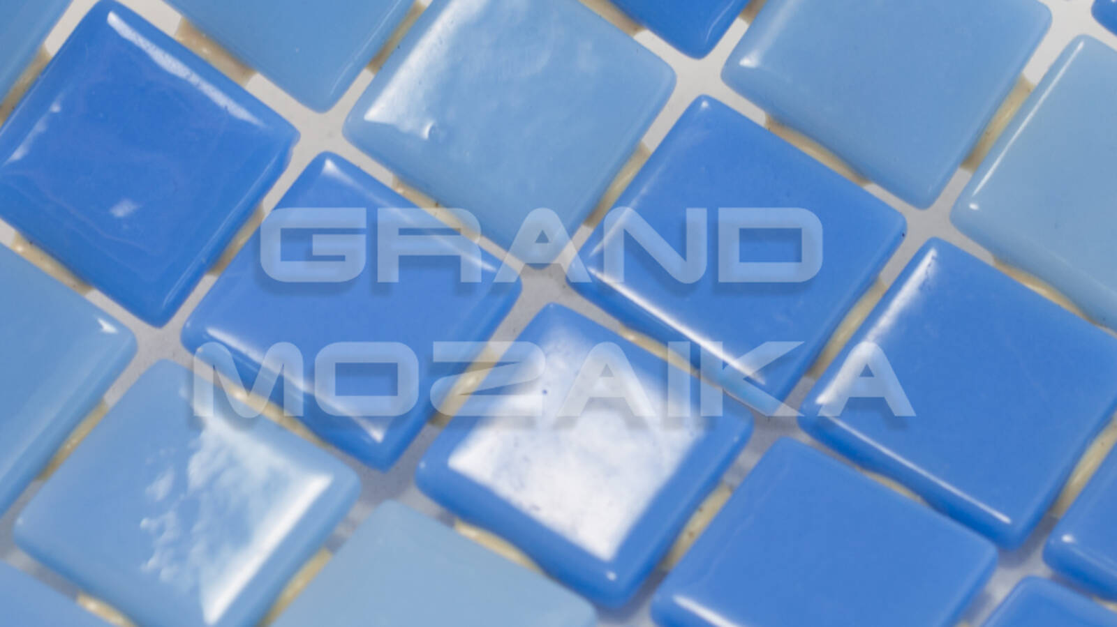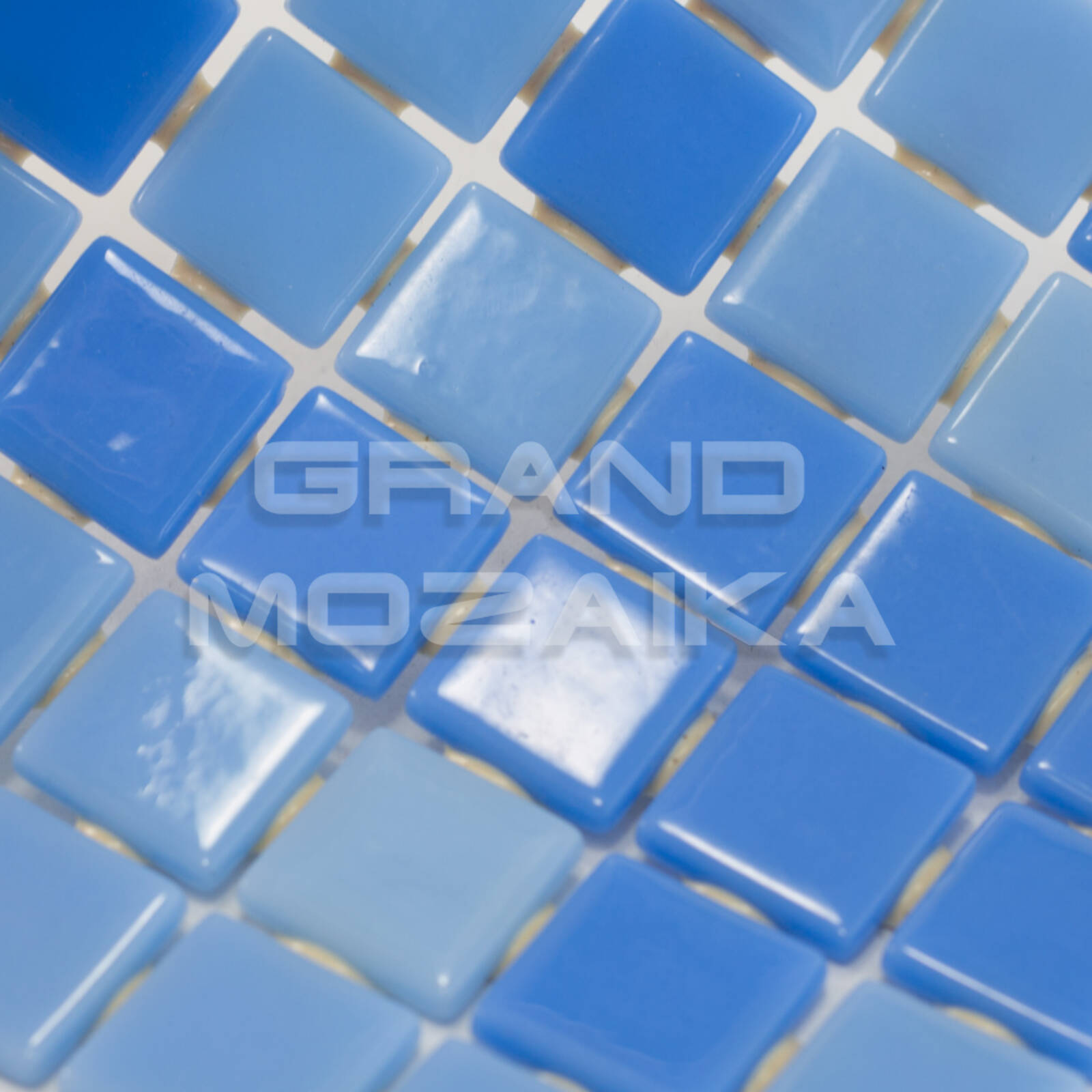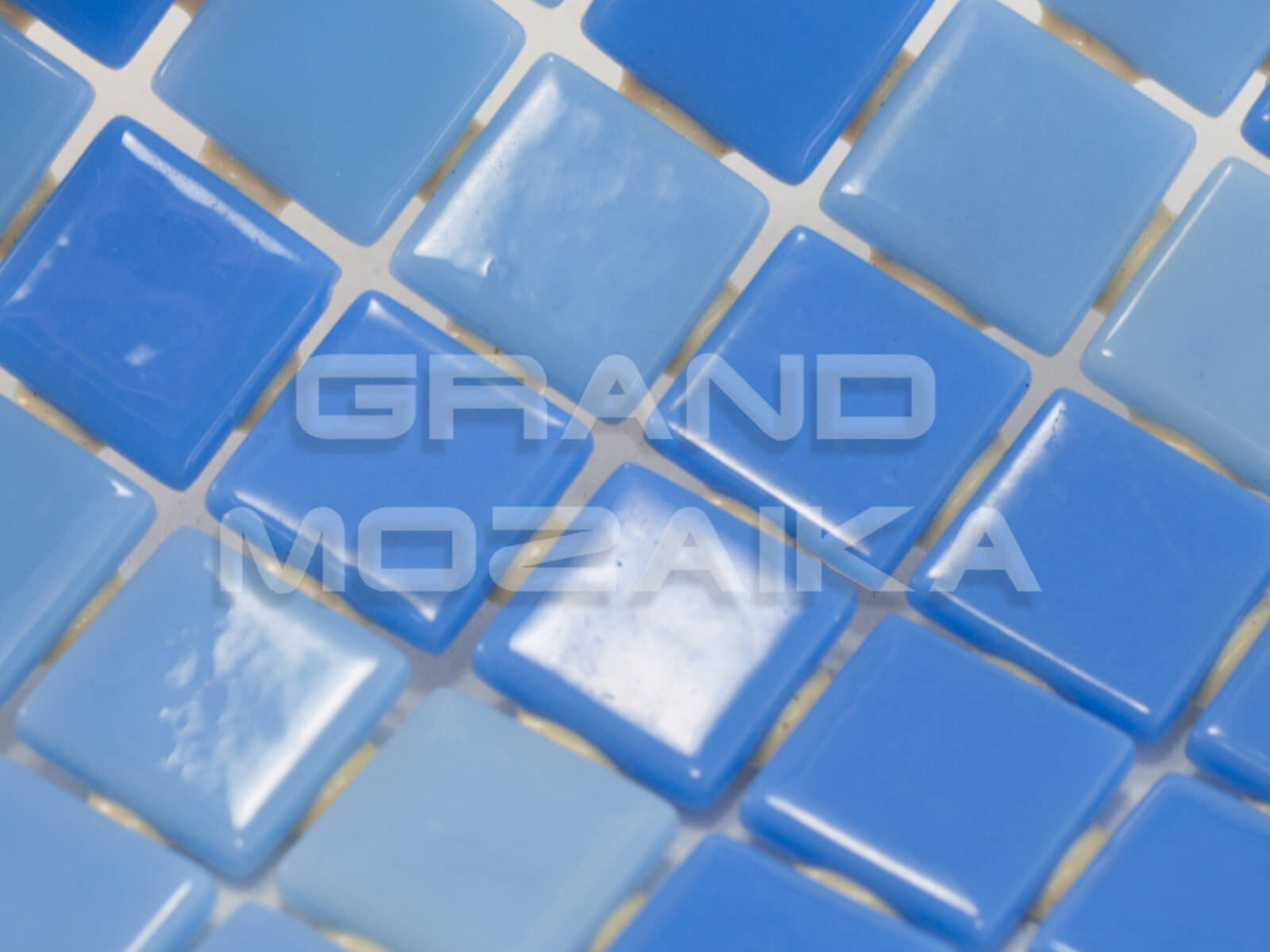 Стеклянная мозаика, серия Mixed (на сцепке), цвет: голубой, синий, размер чипа (мм): 25x25